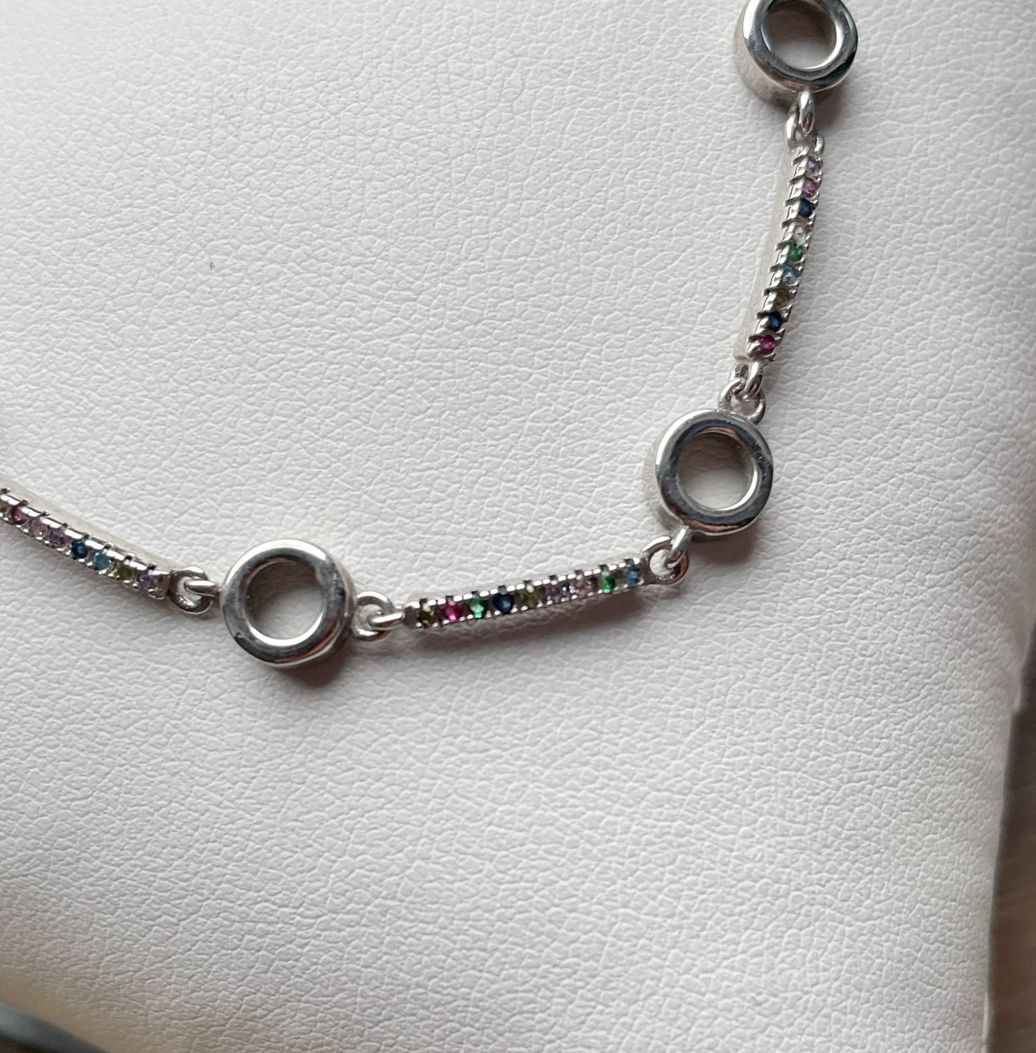 Bransoletka wykonana ze srebra pr.925 i kolorowych cyrkonii.