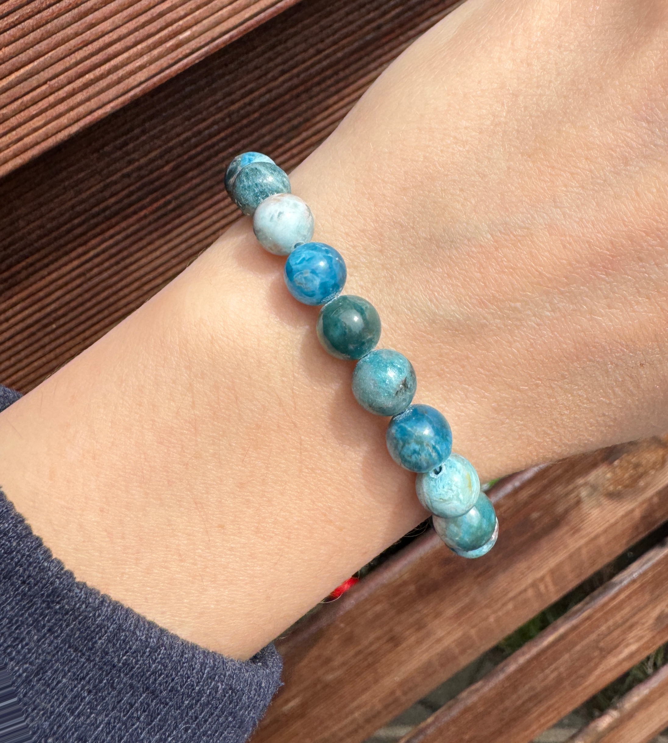 Bransoletka na gumce wykonana z apatytów w kształcie kulek