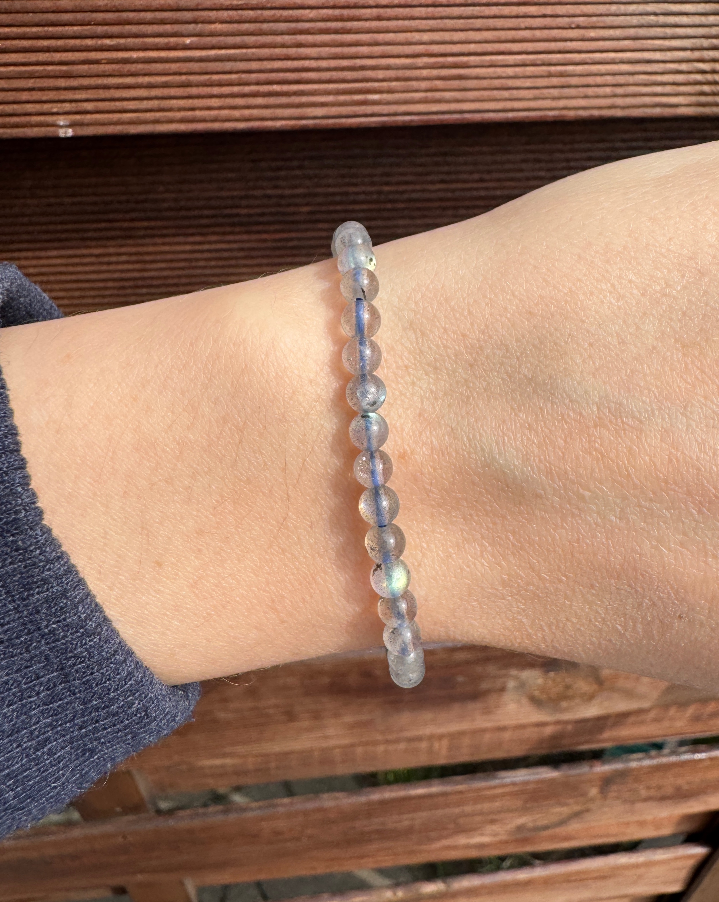 Bransoletka na gumce wykonana z labradorytów w kształcie kulek