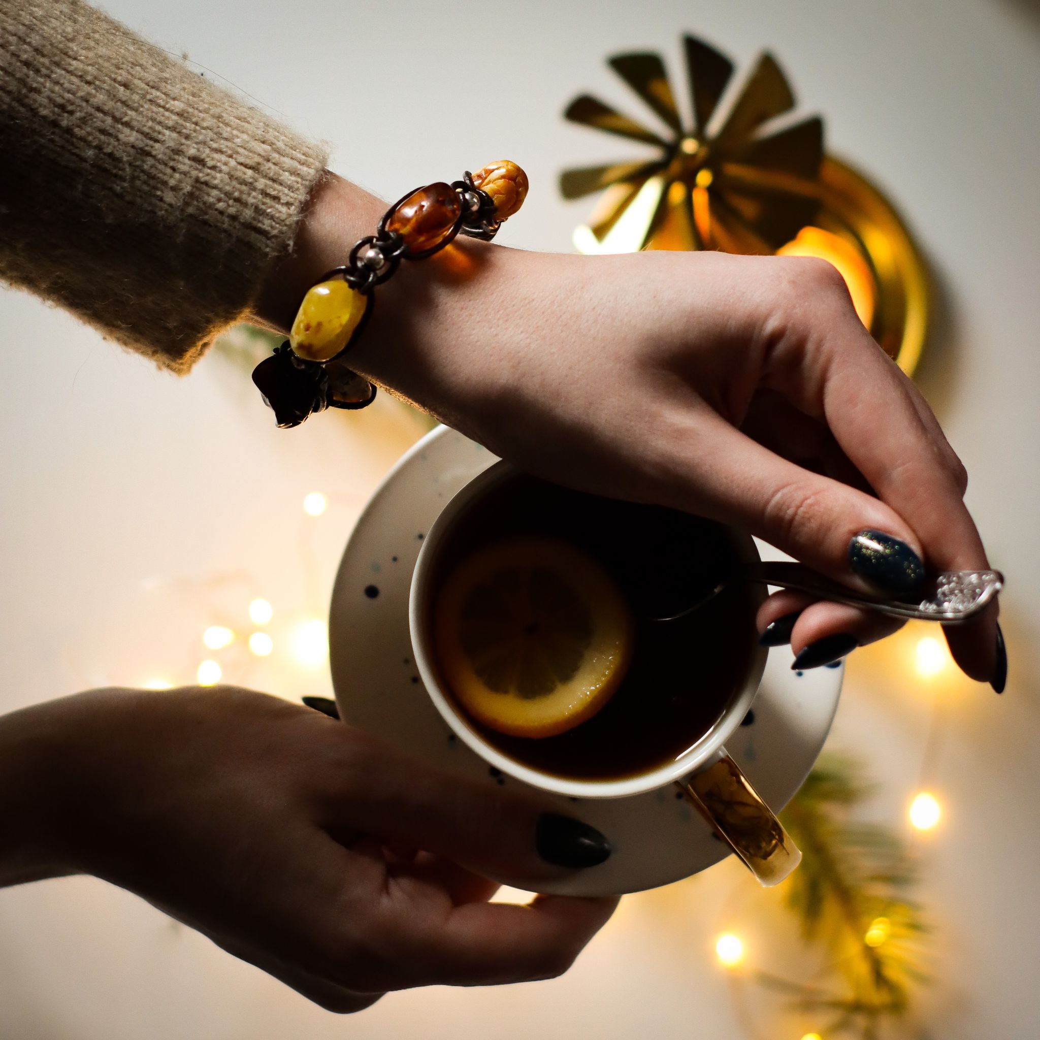 Kształt, rozmiar i odcień bursztynów może różnić się nieco od tych w bransoletce na zdjęciu. Na życzenie możemy przesłać Ci zdjęcie Twojego egzemplarza do akceptacji.