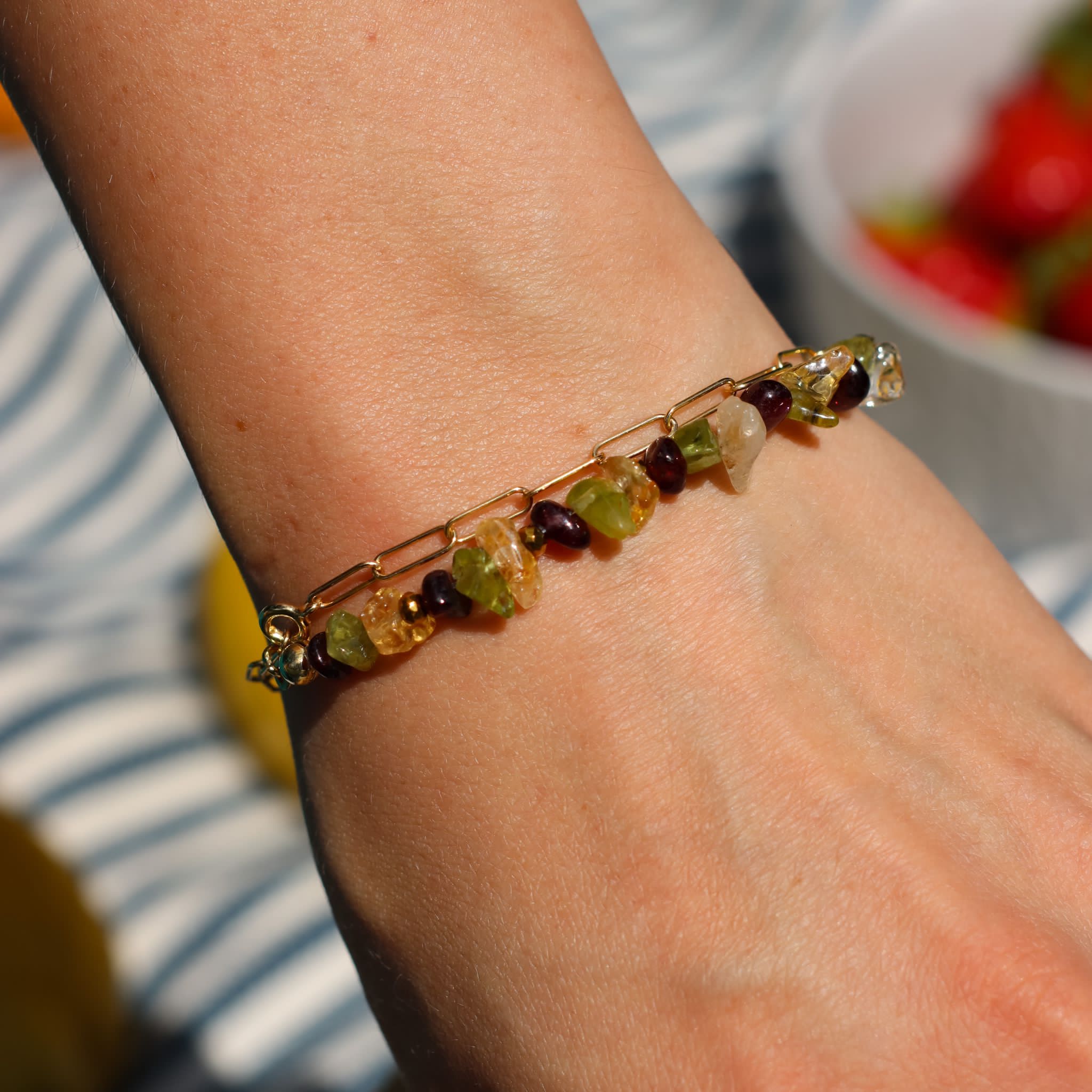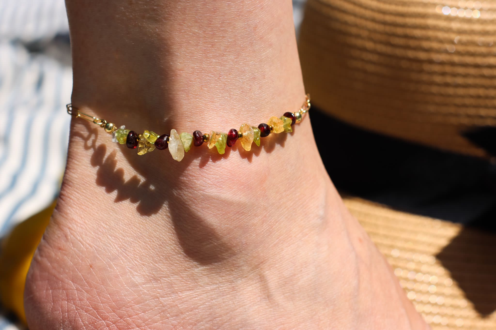 Bransoletka 2w1 na nogę i rękę cytryn, granat, oliwin