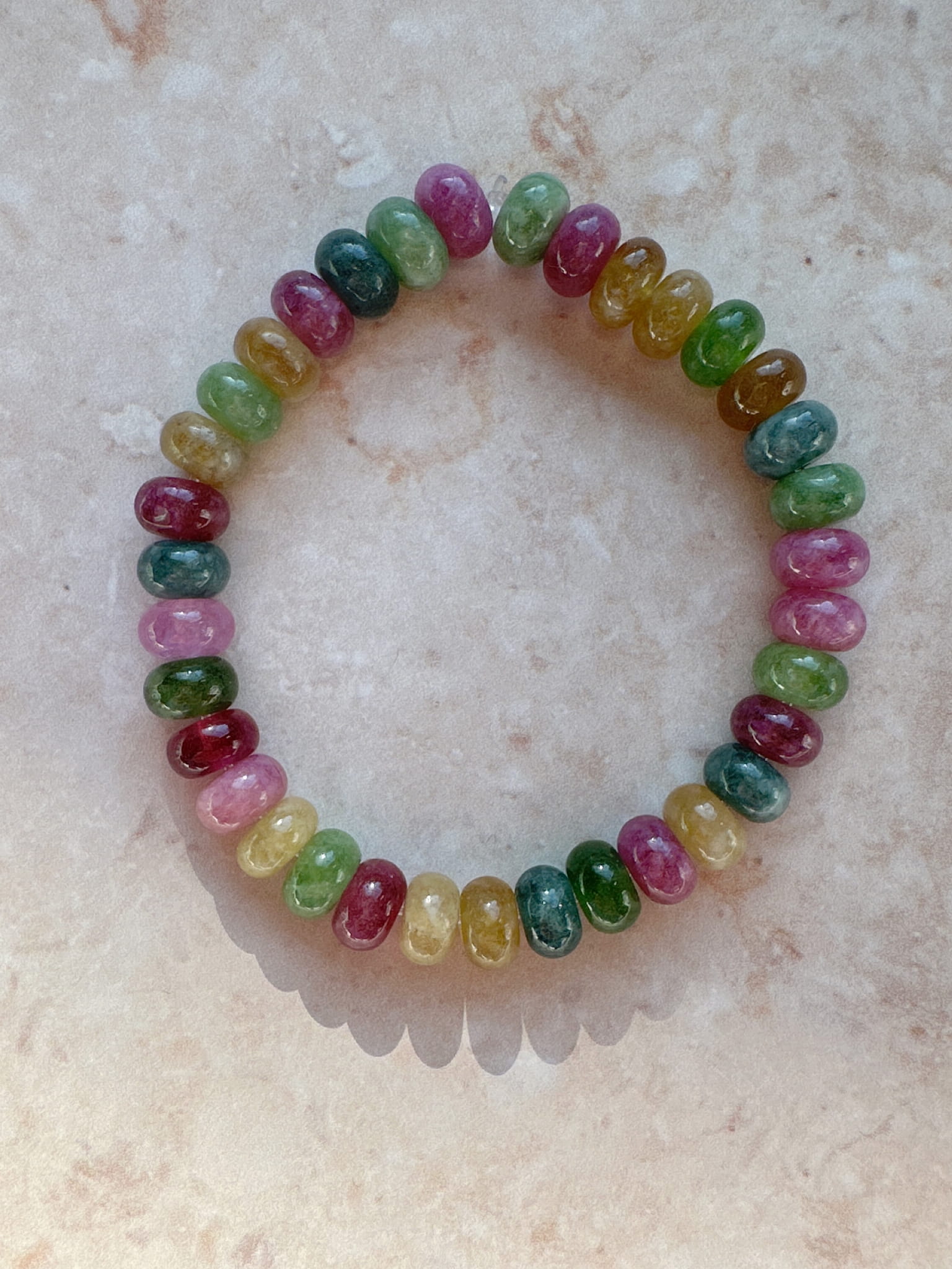 Bransoletka ręcznie wykonana z jadeitów na gumce