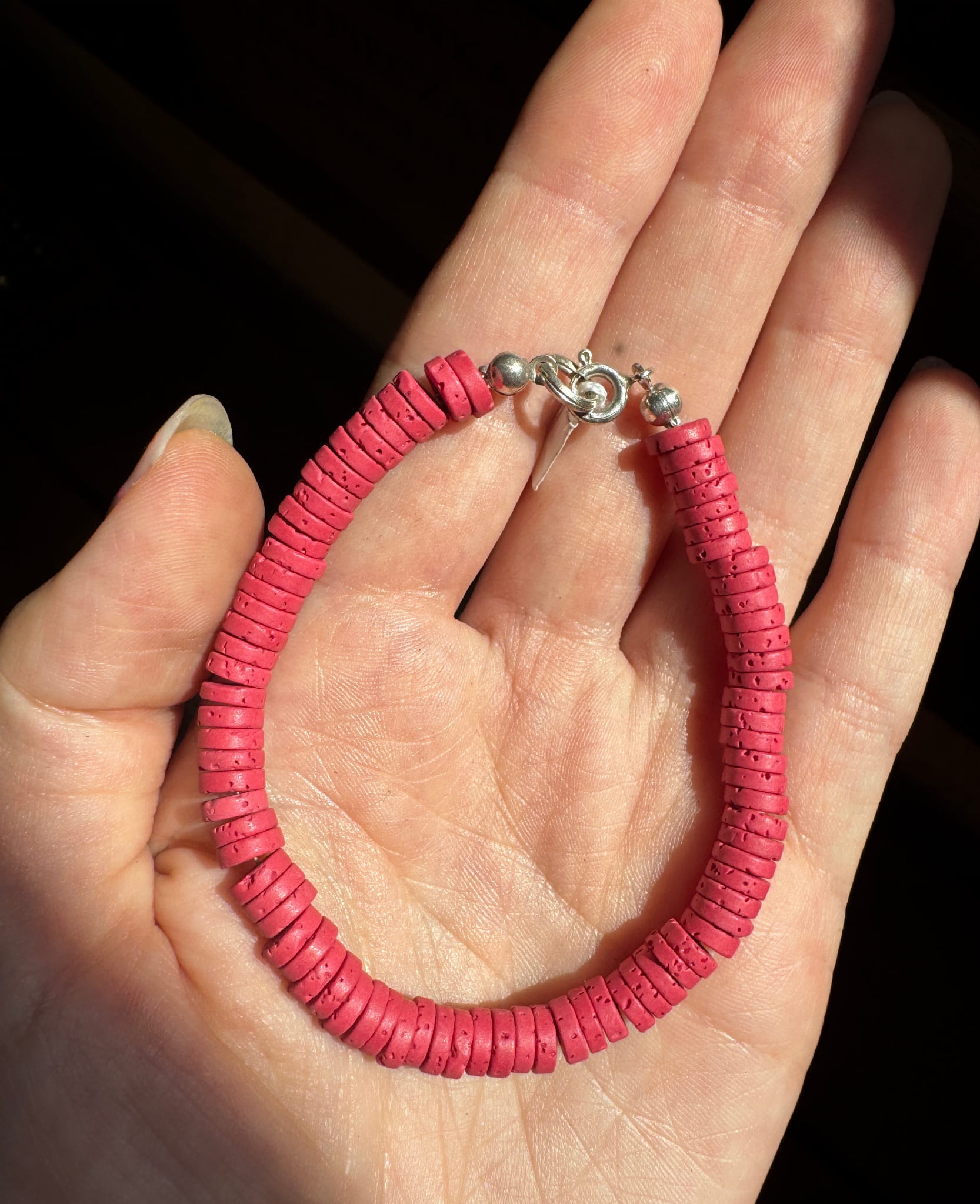 Bransoletka Margaret ręcznie wykonana z plasterków lawy wulkanicznej i srebra pr 925.