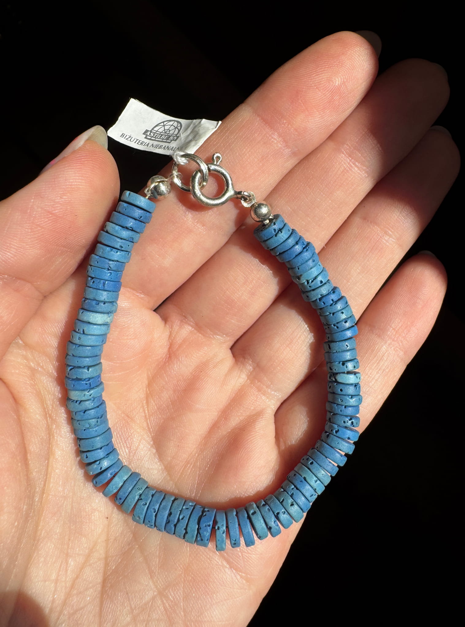 Bransoletka Margaret ręcznie wykonana z plasterków lawy wulkanicznej i srebra pr 925.