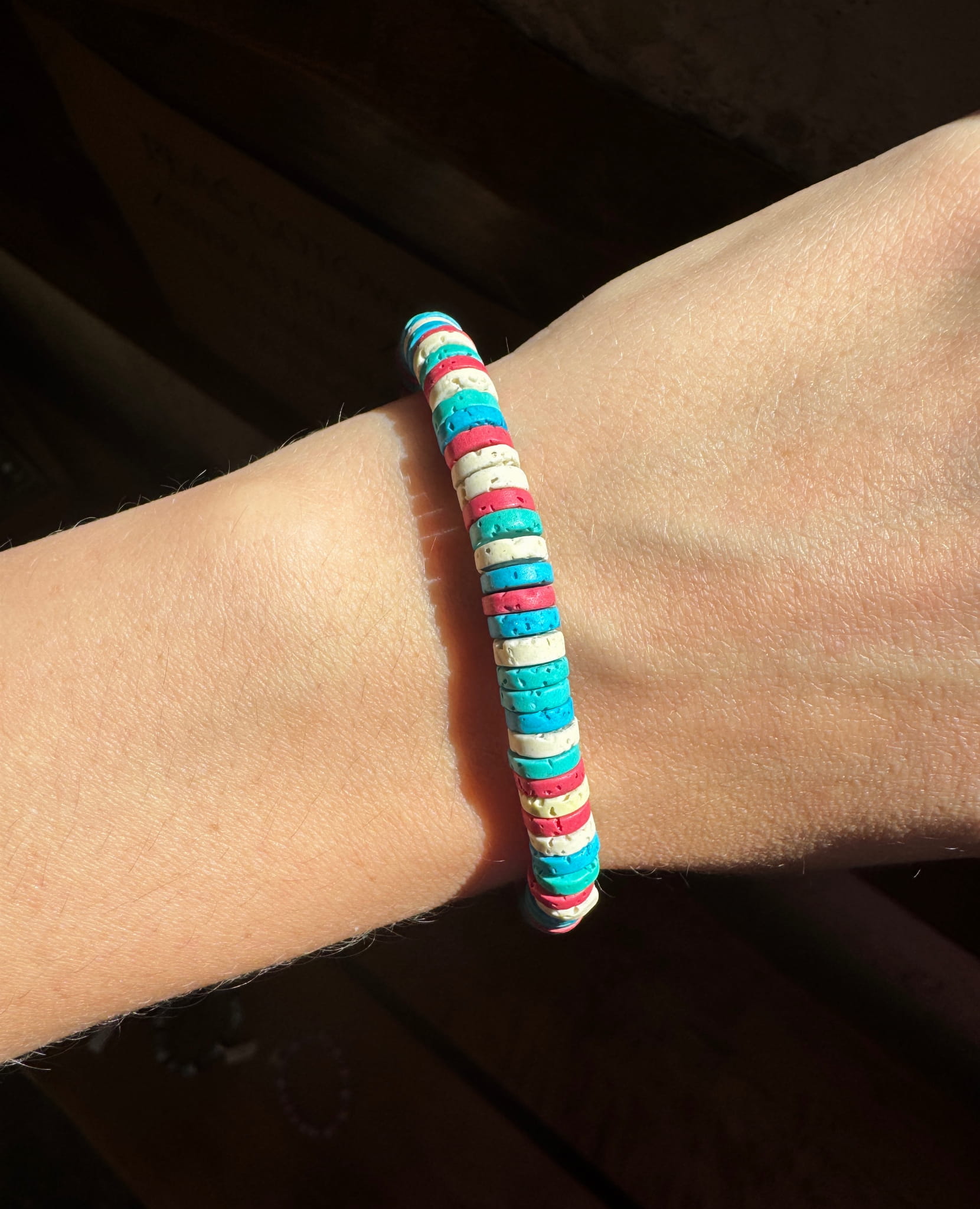 Bransoletka Margaret ręcznie wykonana z plasterków lawy wulkanicznej na gumce.