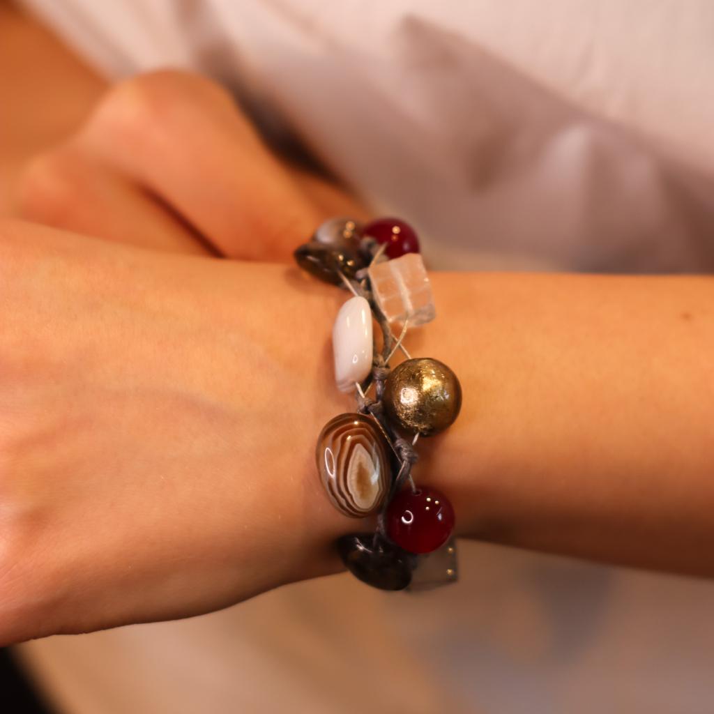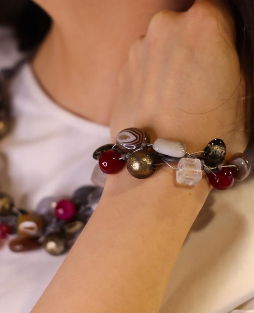 Bransoletka, którą zamówisz może różnić się kształtem i rodzajem kamieni, od tej, która widoczna jest na zdjęciu. Na życzenie przed wysyłką prześlemy Ci zdjęcie Twojego egzemplarza do akceptacji.