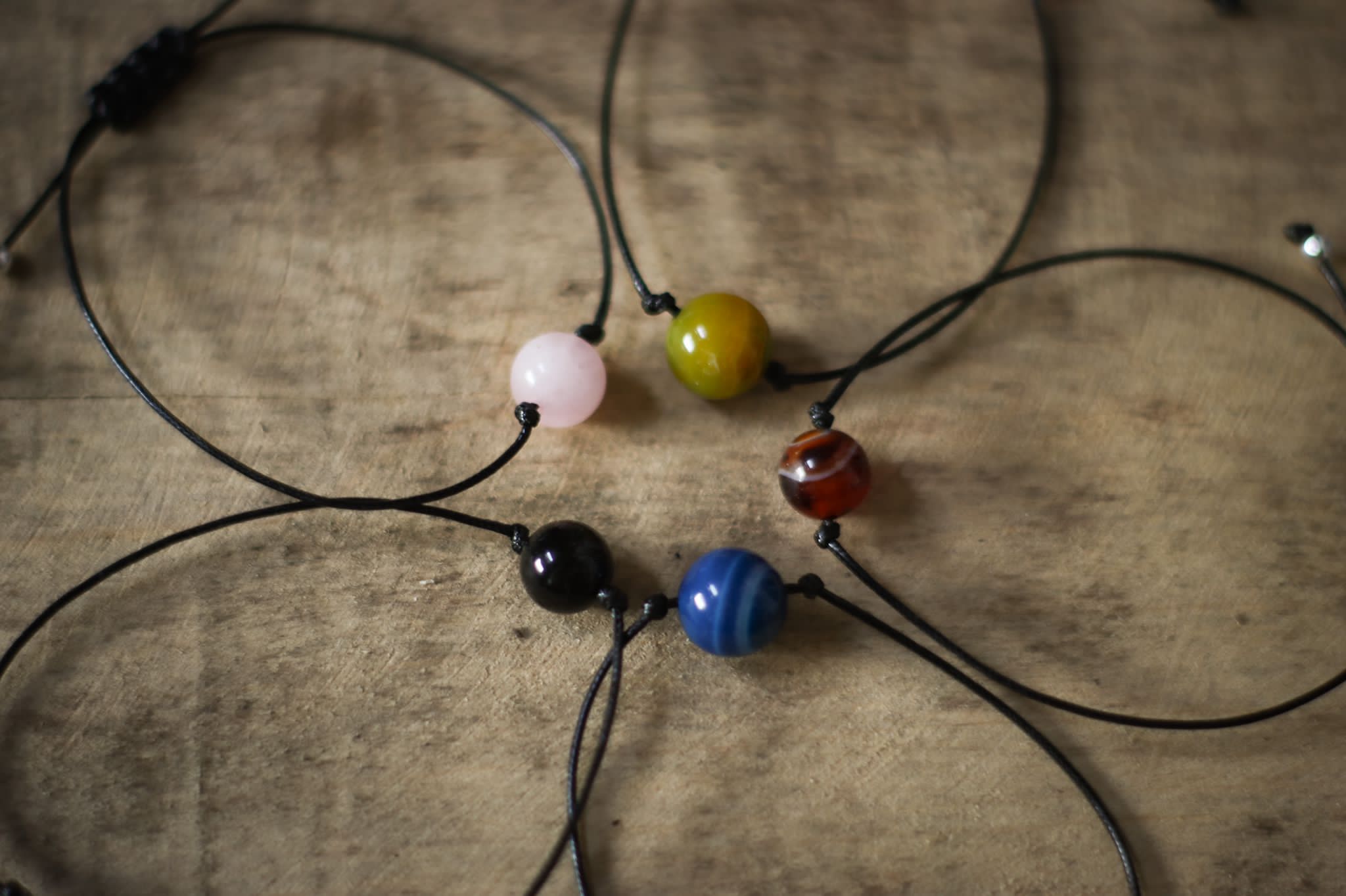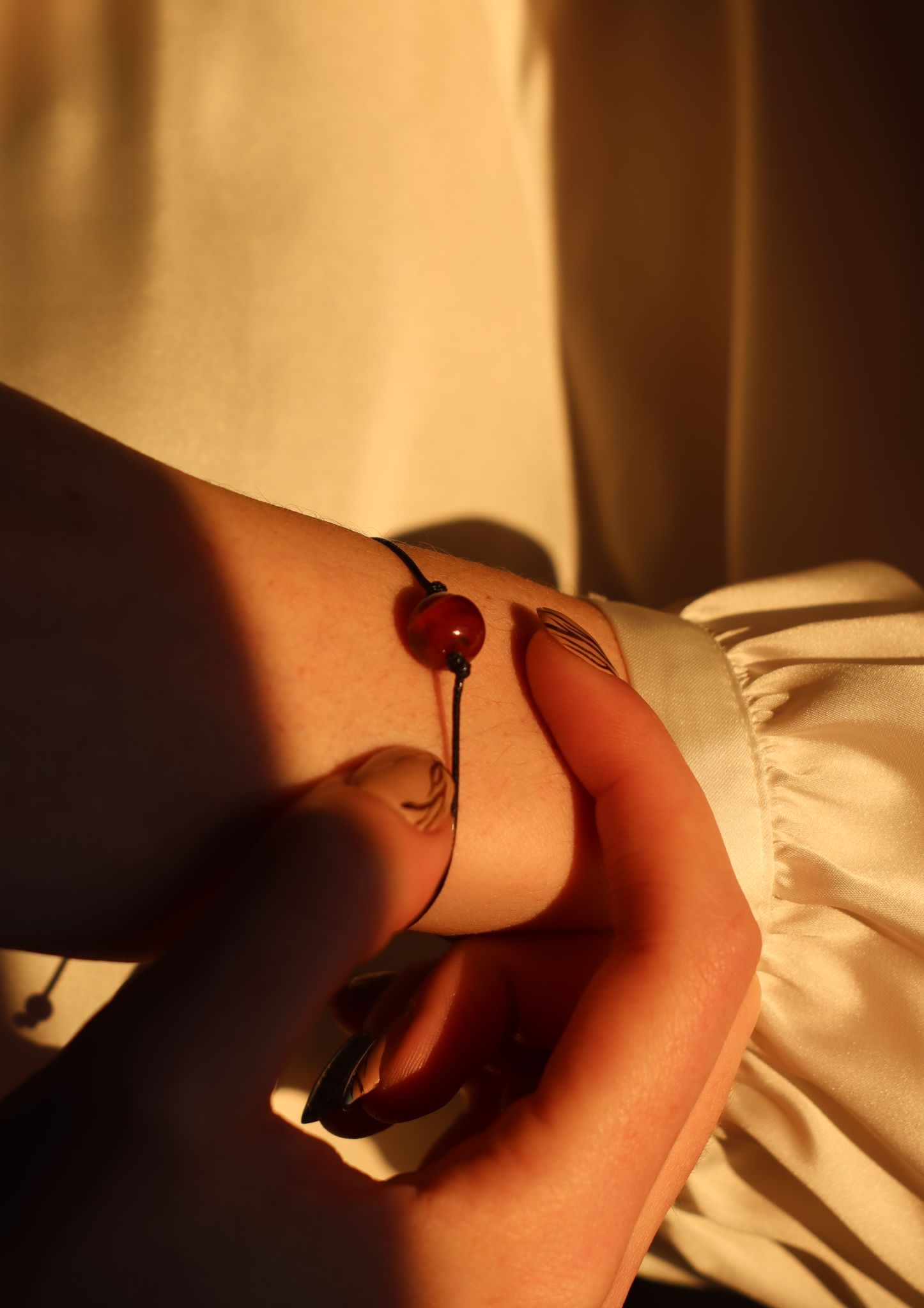 Piękna, delikatna i subtelna bransoletka z kulki agatu brązowego na czarnym sznurku.