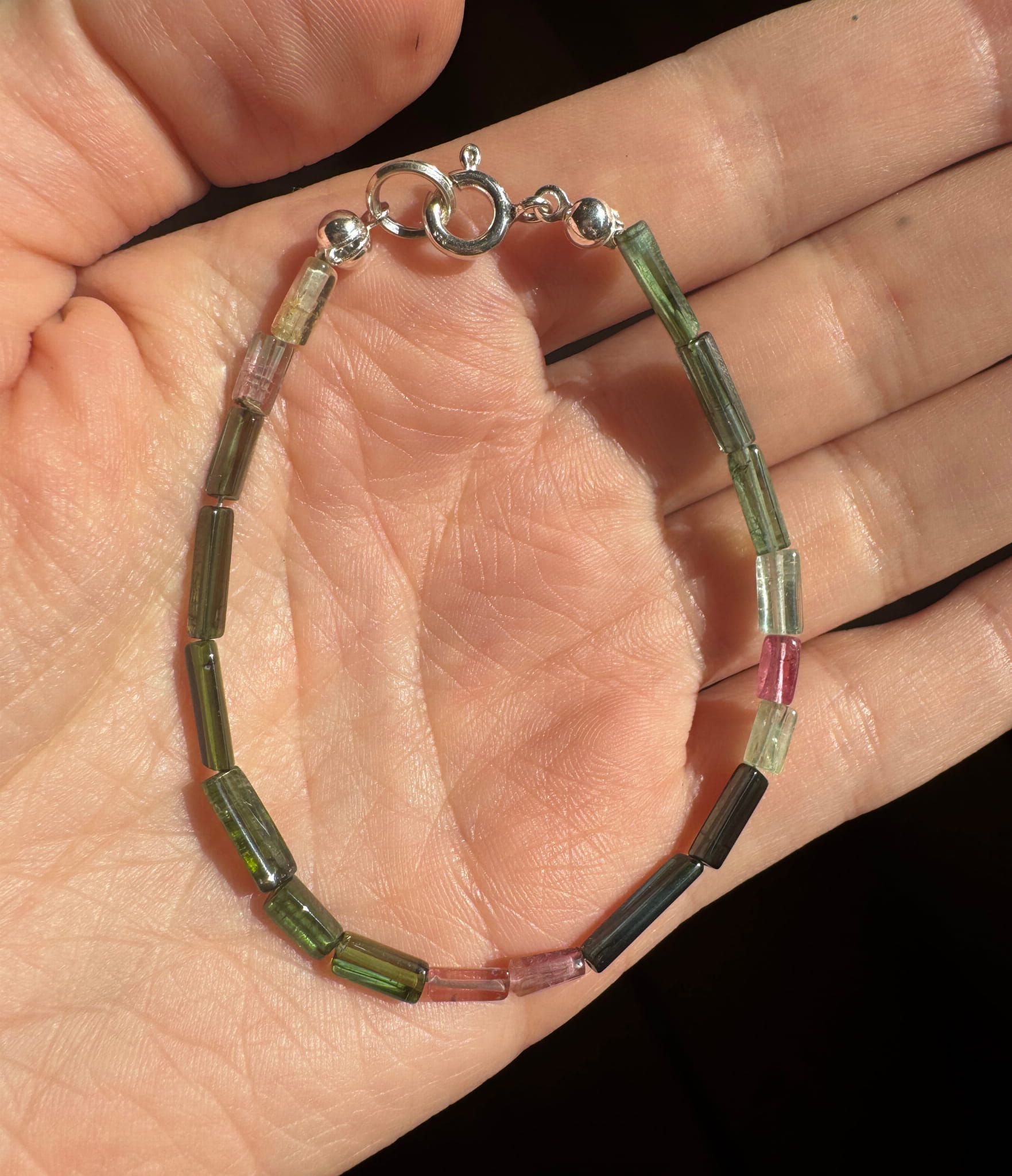 Piękna bransoletka z turmalinu arbuzowego i srebra pr. 925
