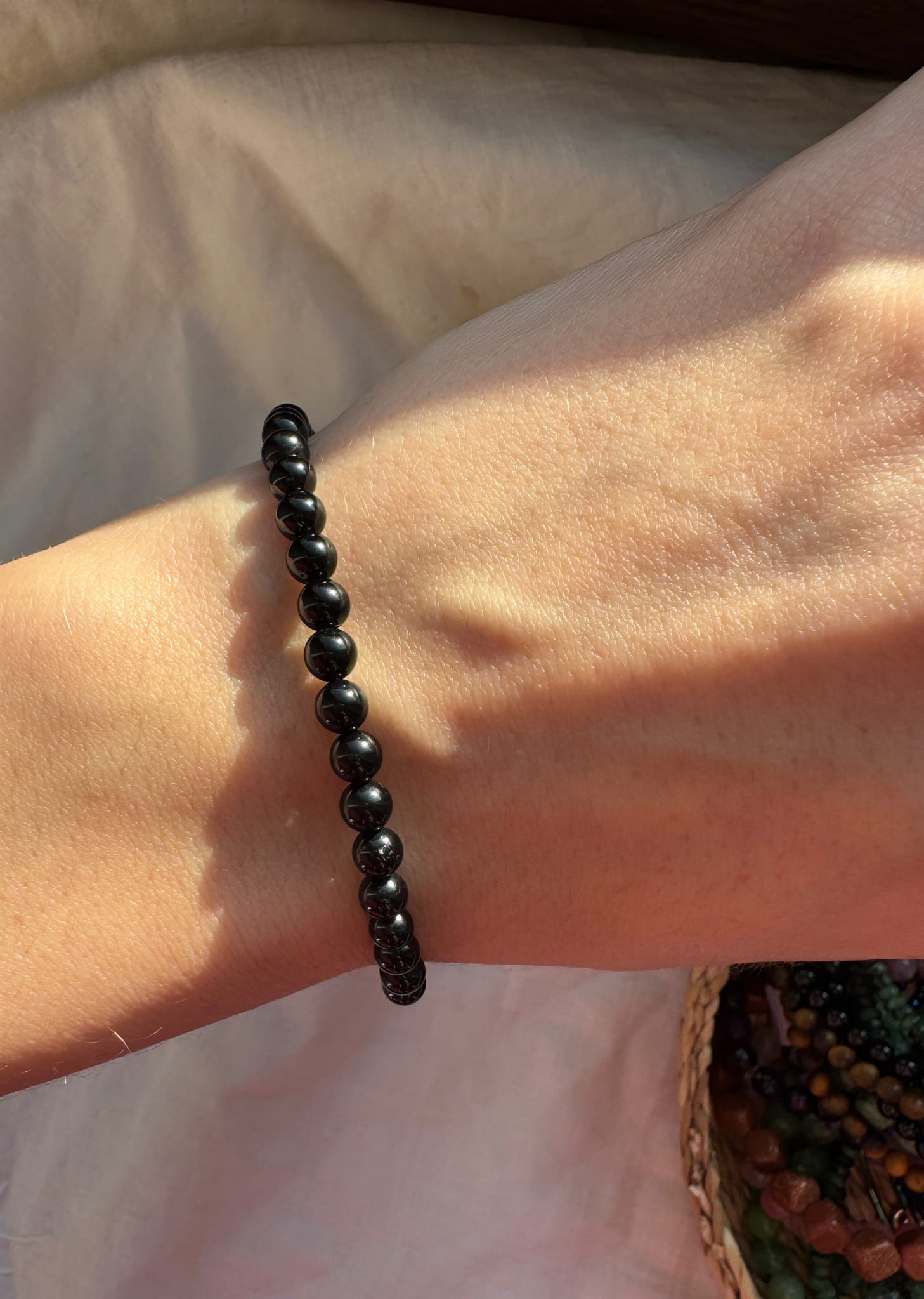Piękna bransoletka z kulek czarnego turmalinu i srebra pr. 925