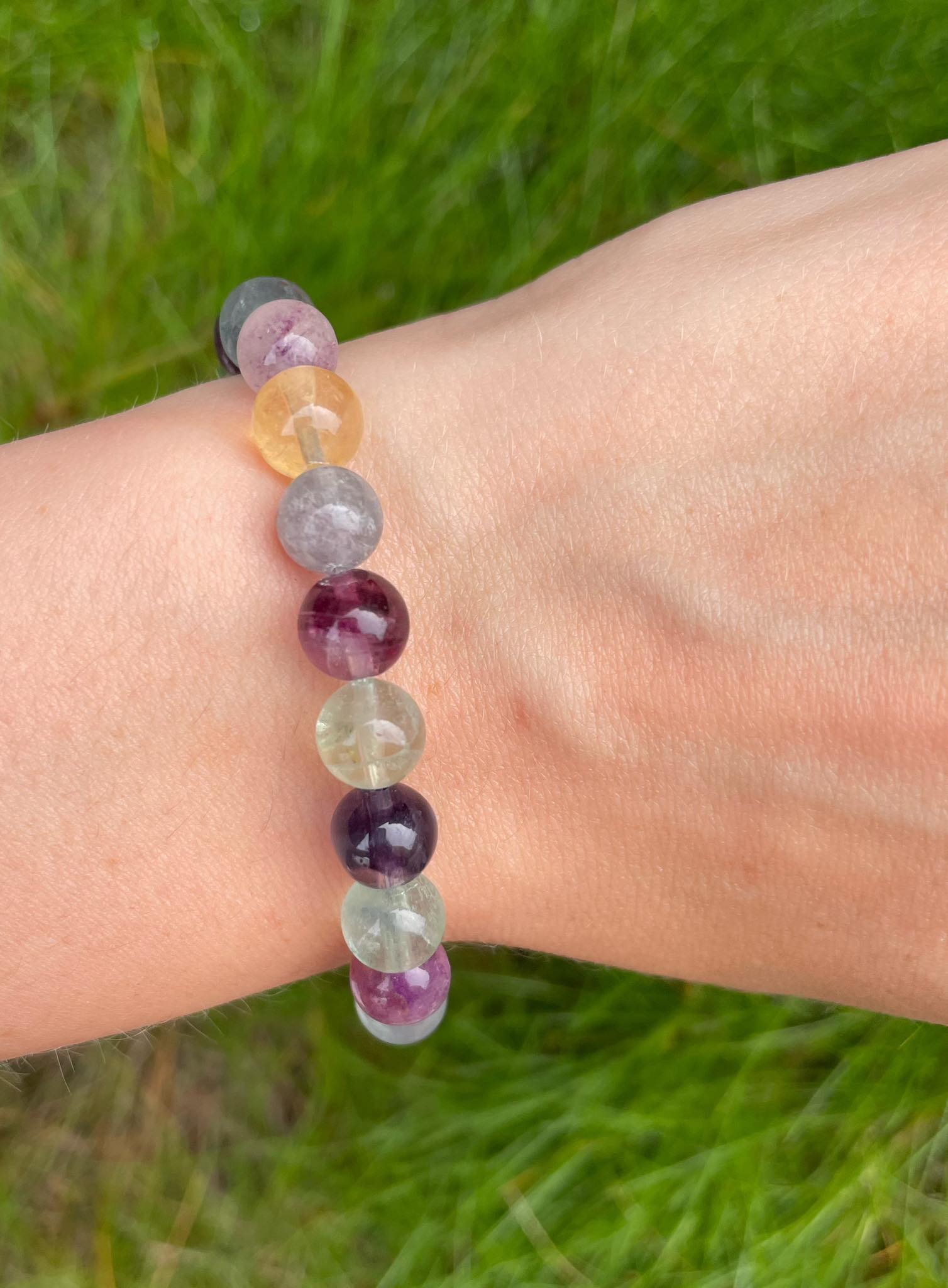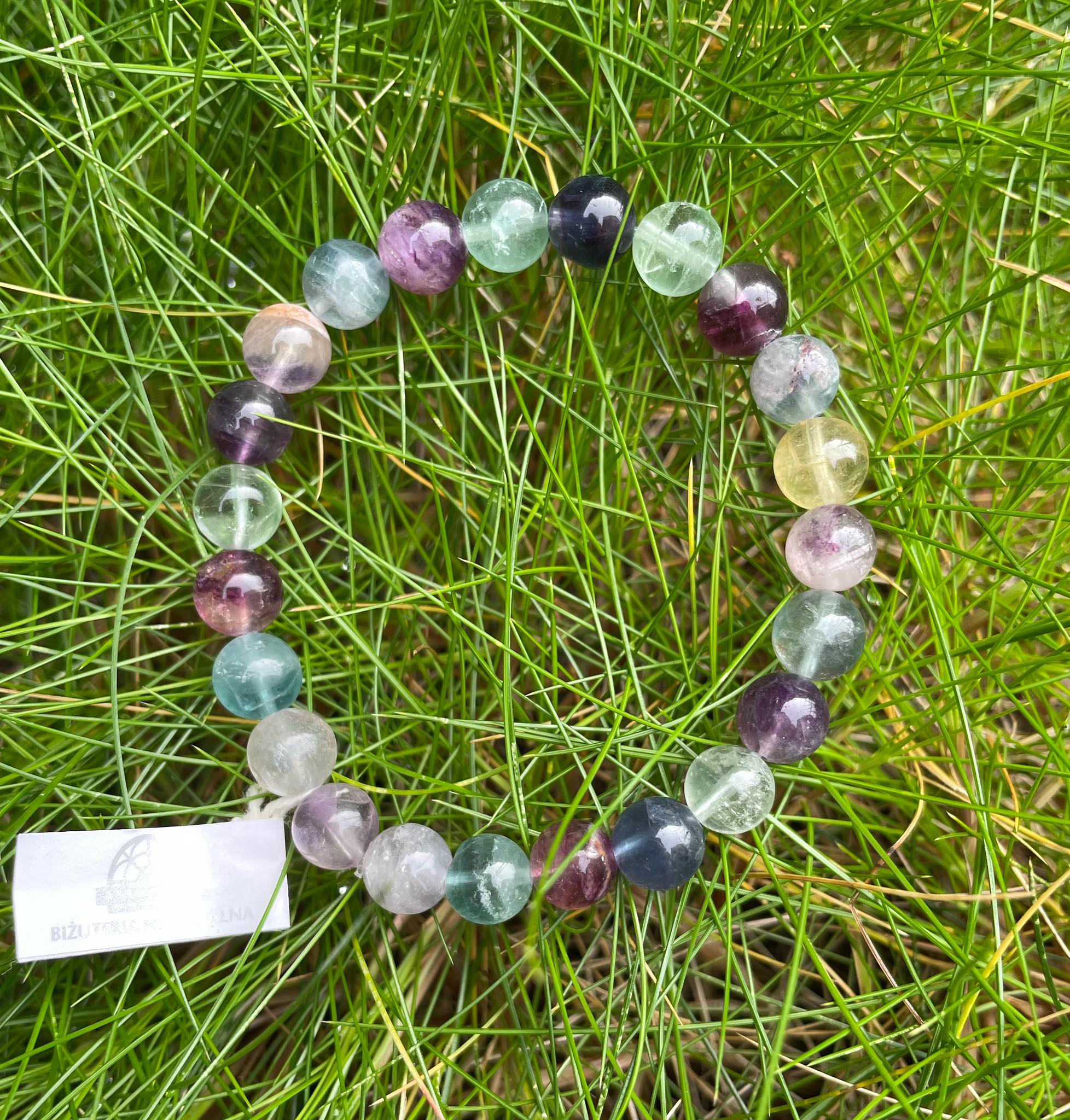 Piękna i wygodna bransoletka z kulek fluorytu na gumce