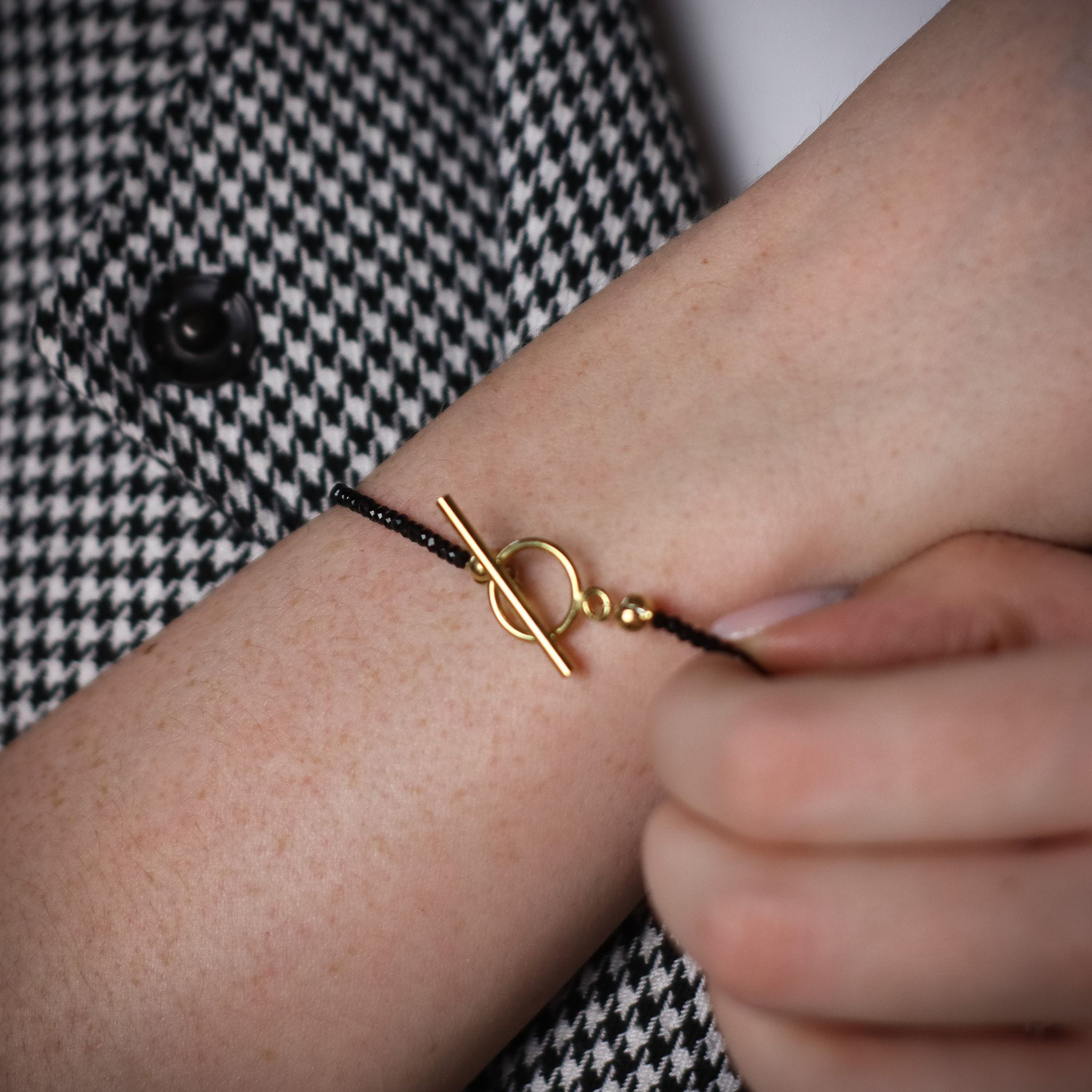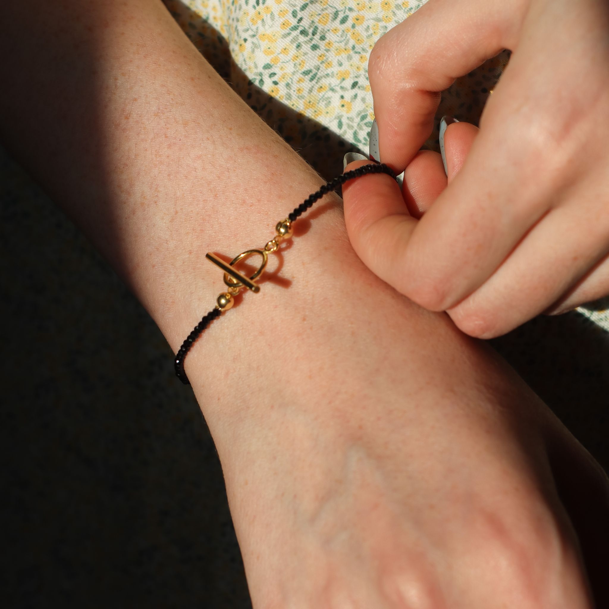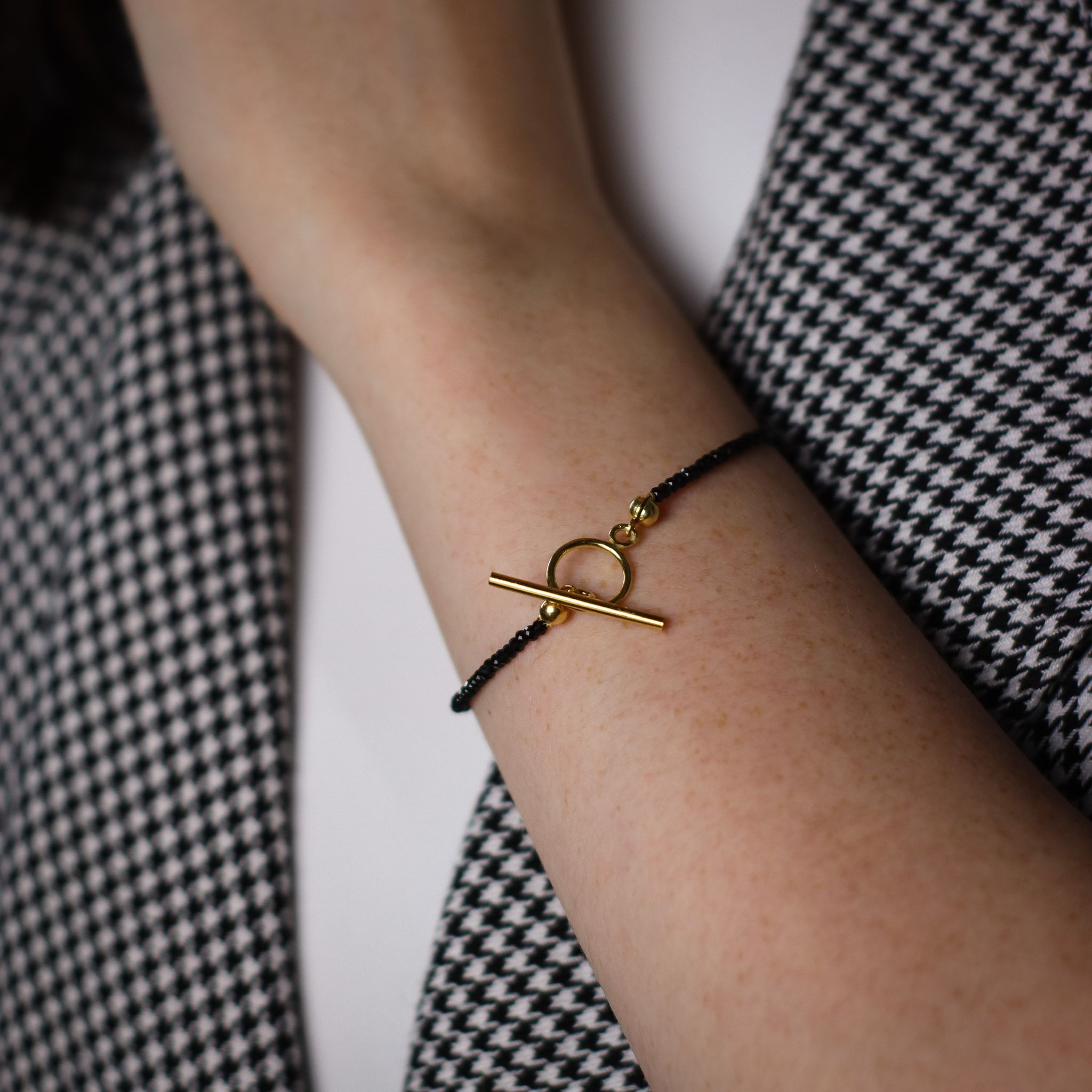 Piękna, delikatna bransoletka z czarnych, fasetowanych spineli
