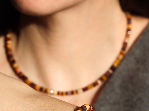Piękna, delikatna bransoletka z jaspisów mokaitów fasetowanych i srebra pr.925