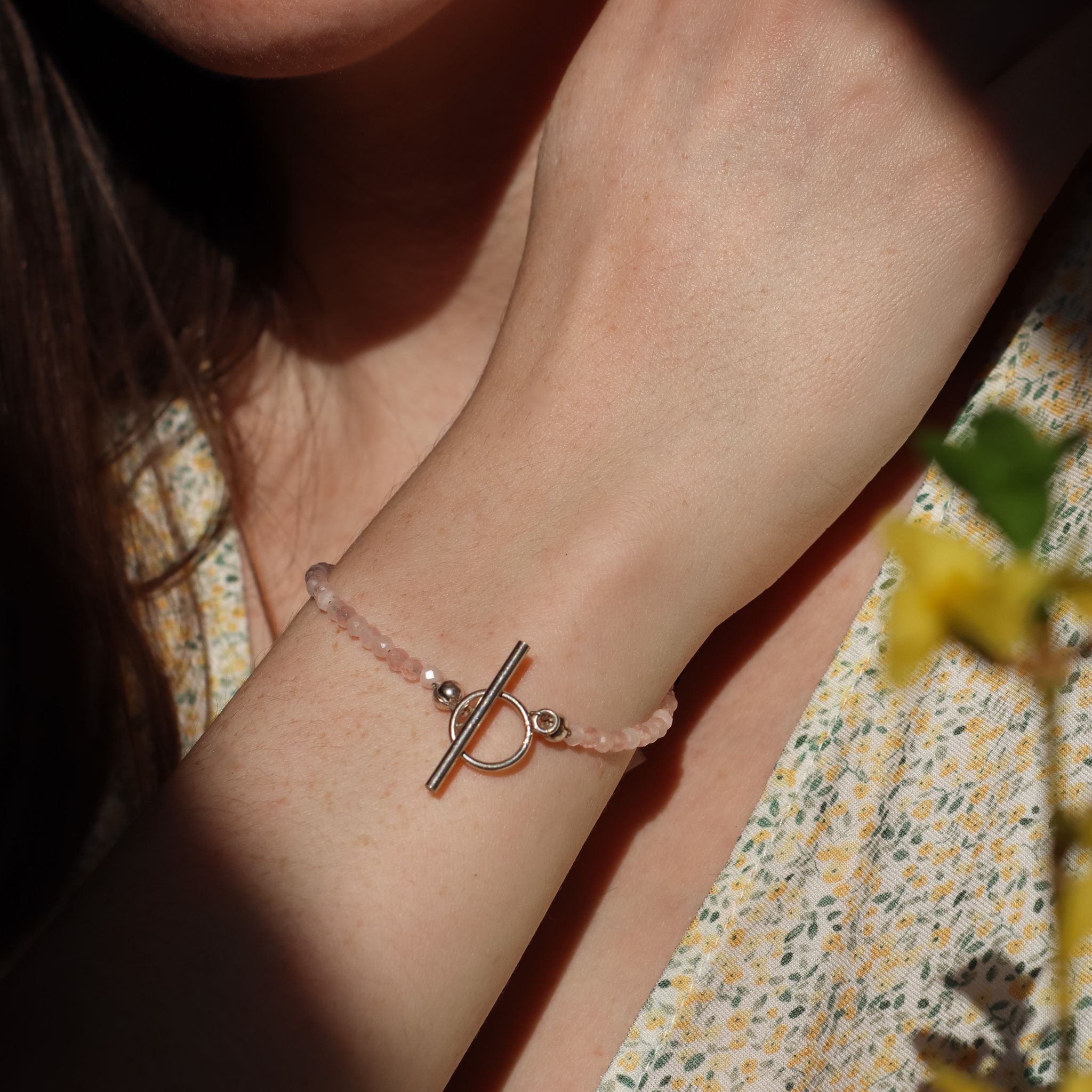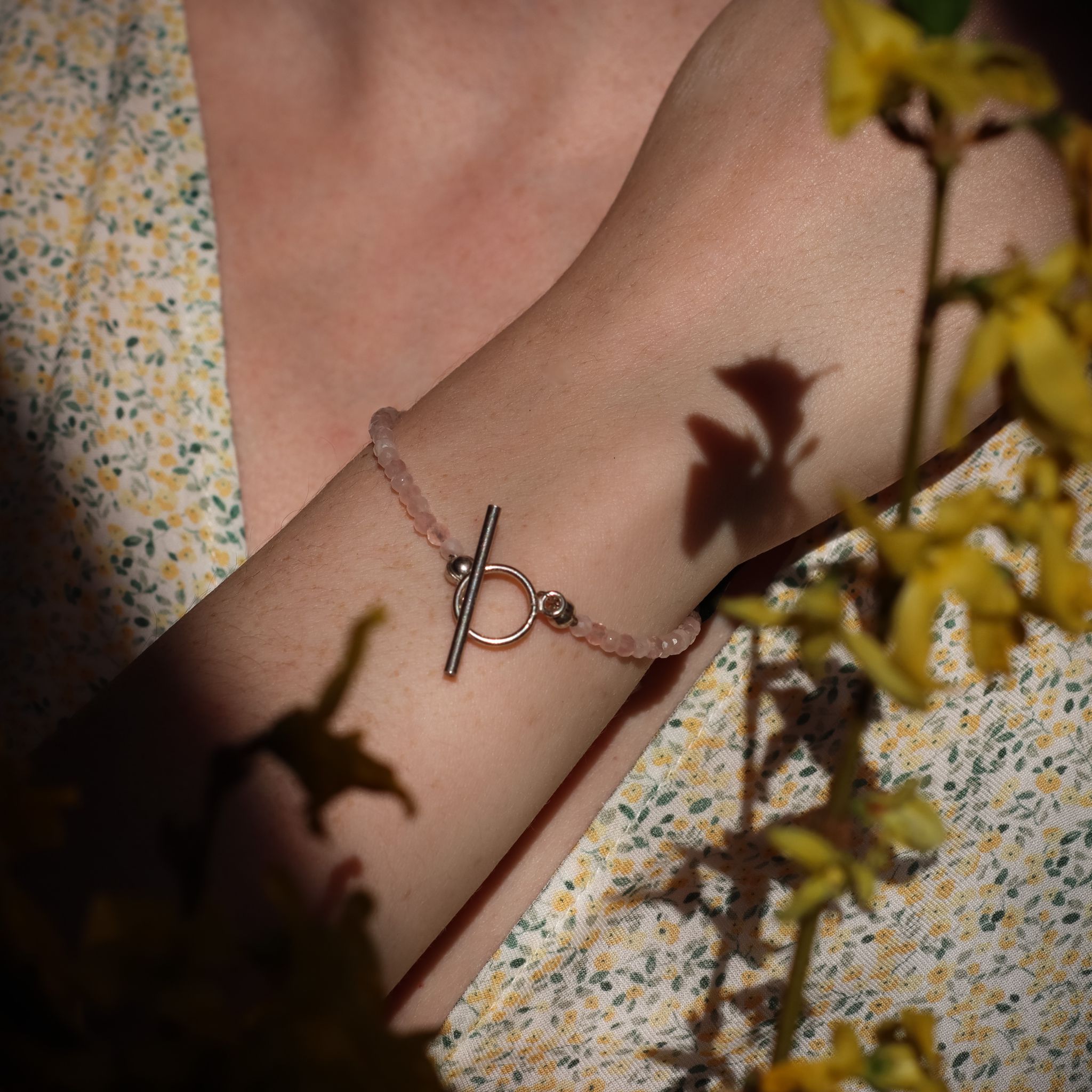 Piękna, delikatna bransoletka z fasetowanych kwarcy różowych