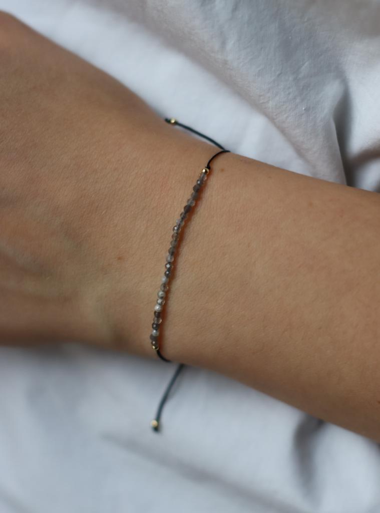 Piękna, delikatna i subtelna bransoletka z fasetowanego labradorytu i złotego hematytu.