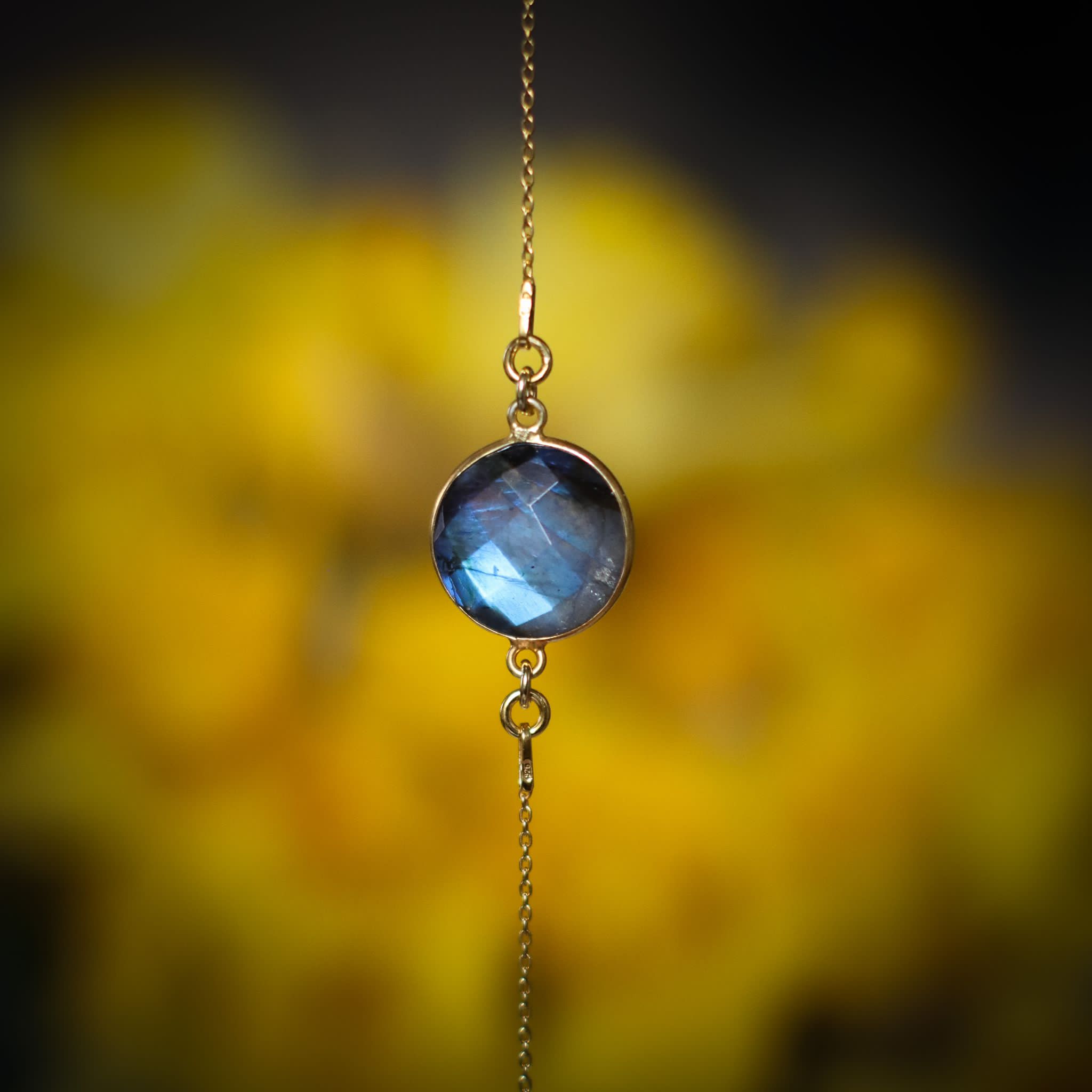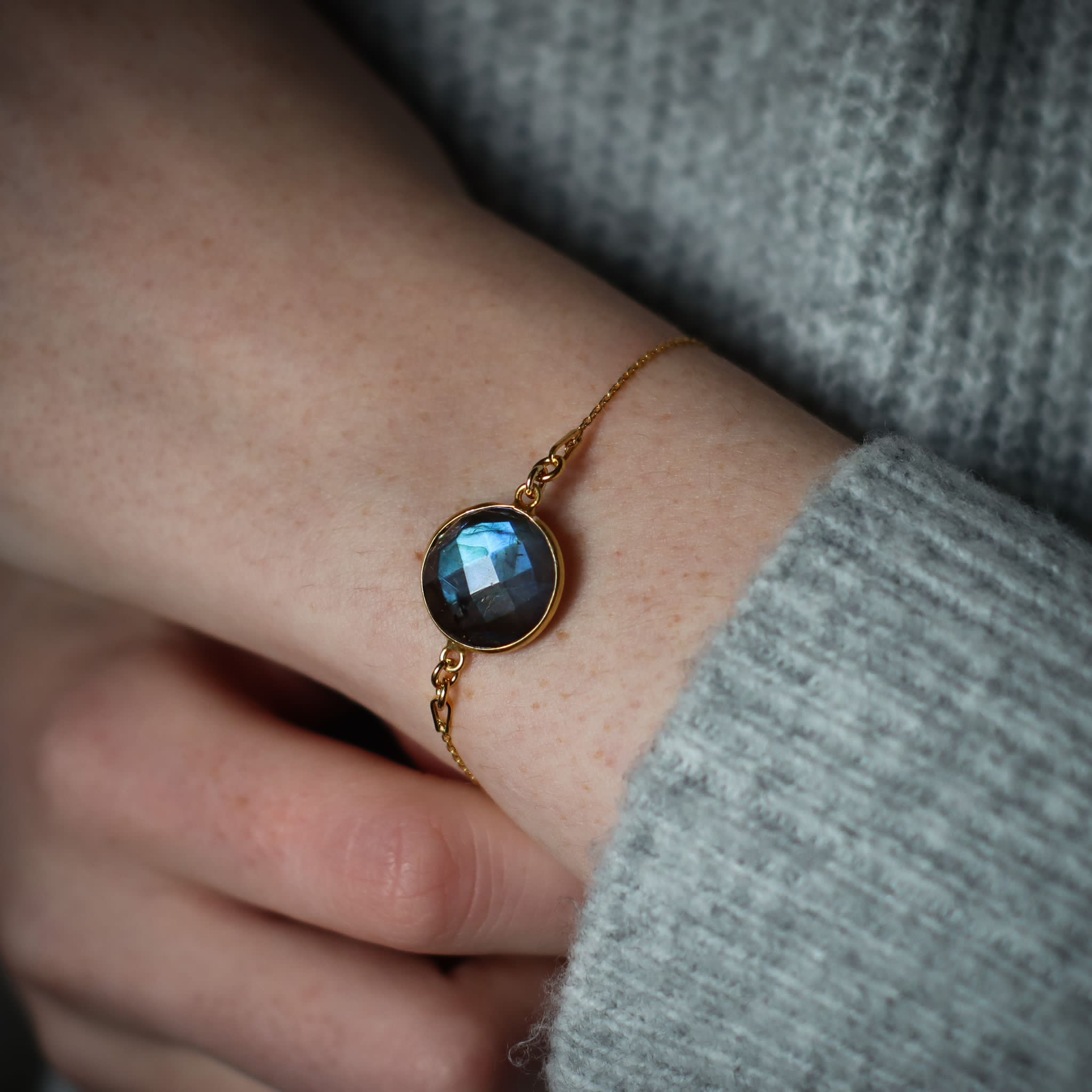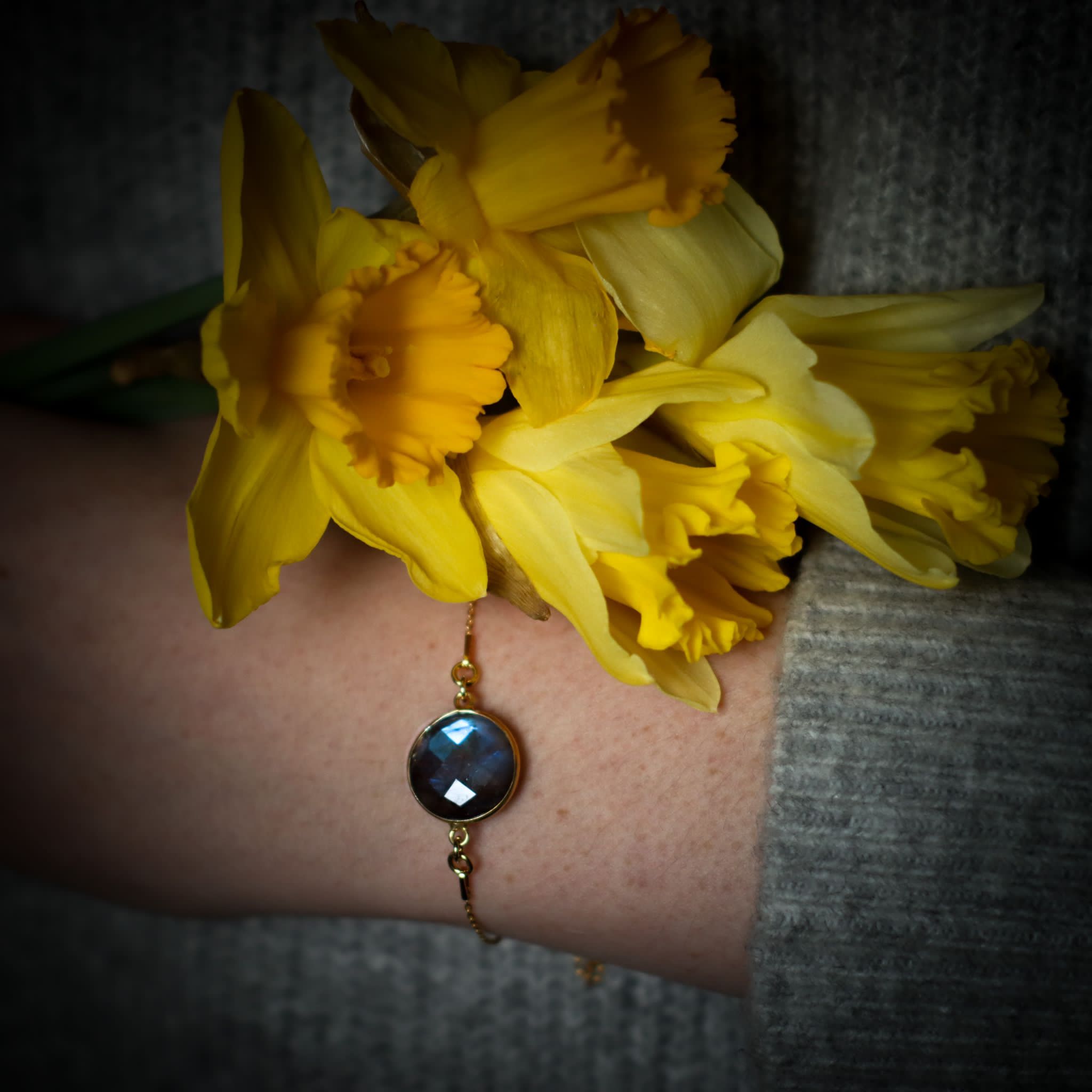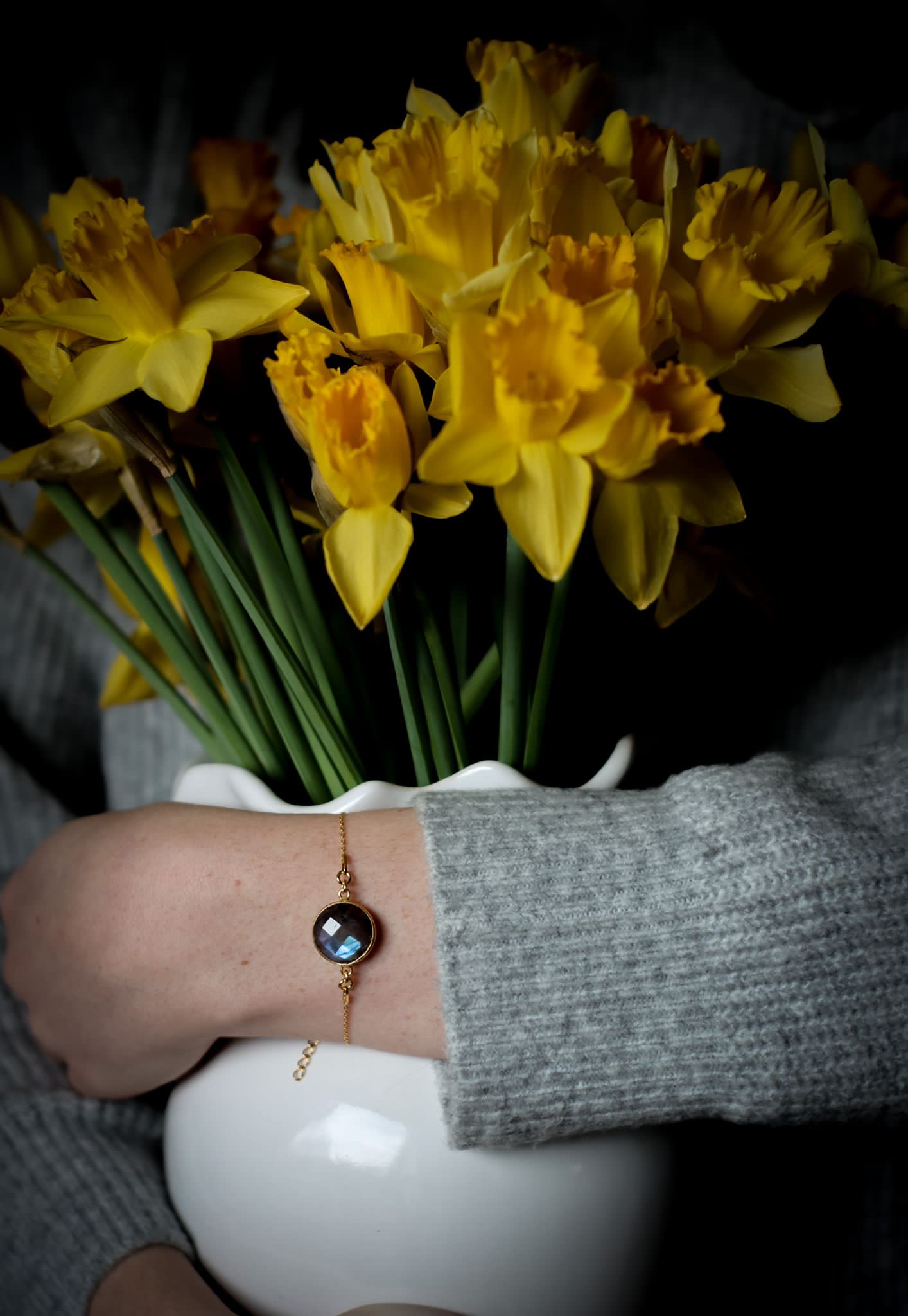 Delikatna bransoletka celebrytka z pozłacanego srebra pr.925 i labradorytu.