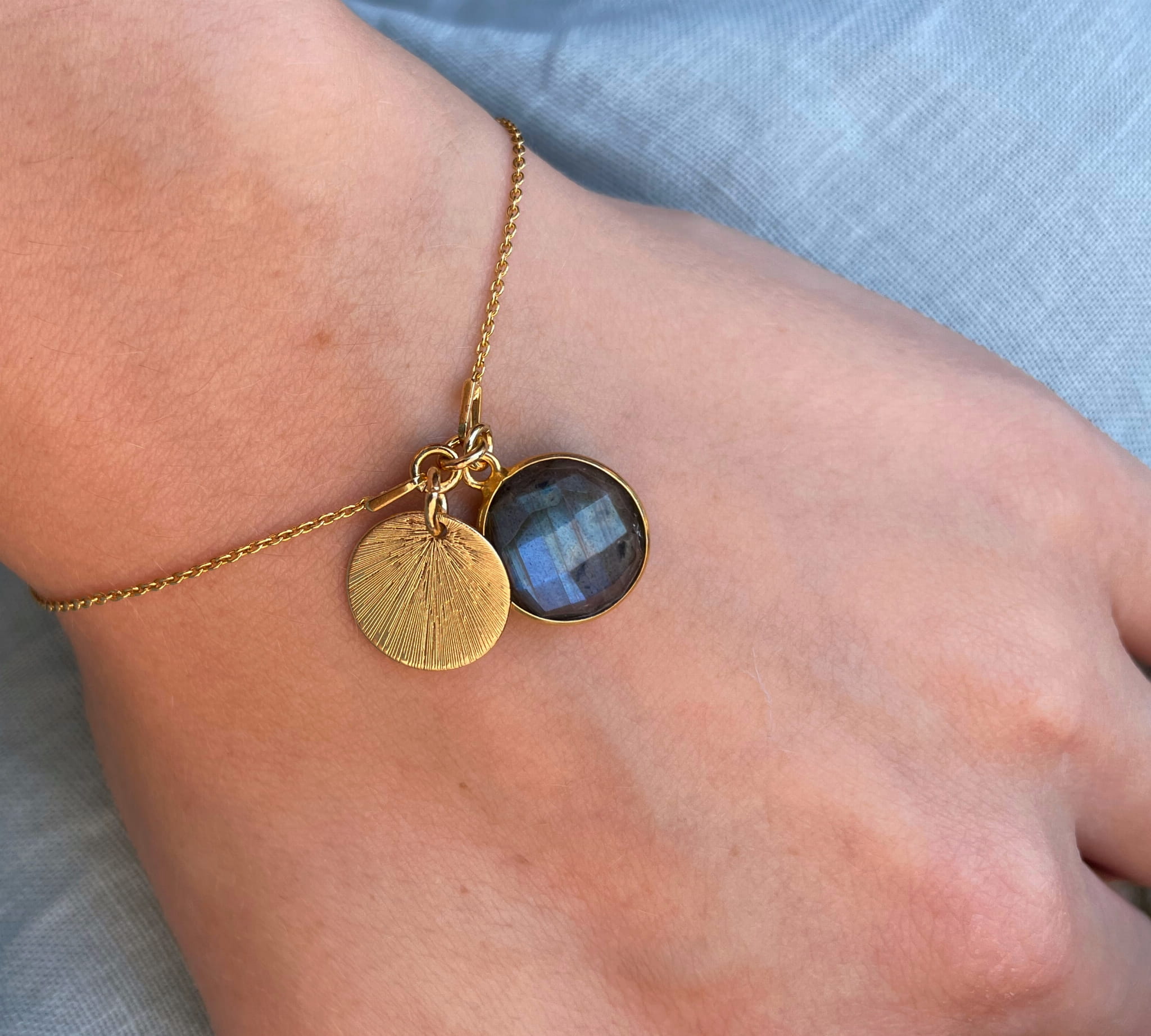 Bransoletka łańcuszek labradoryt z blaszką