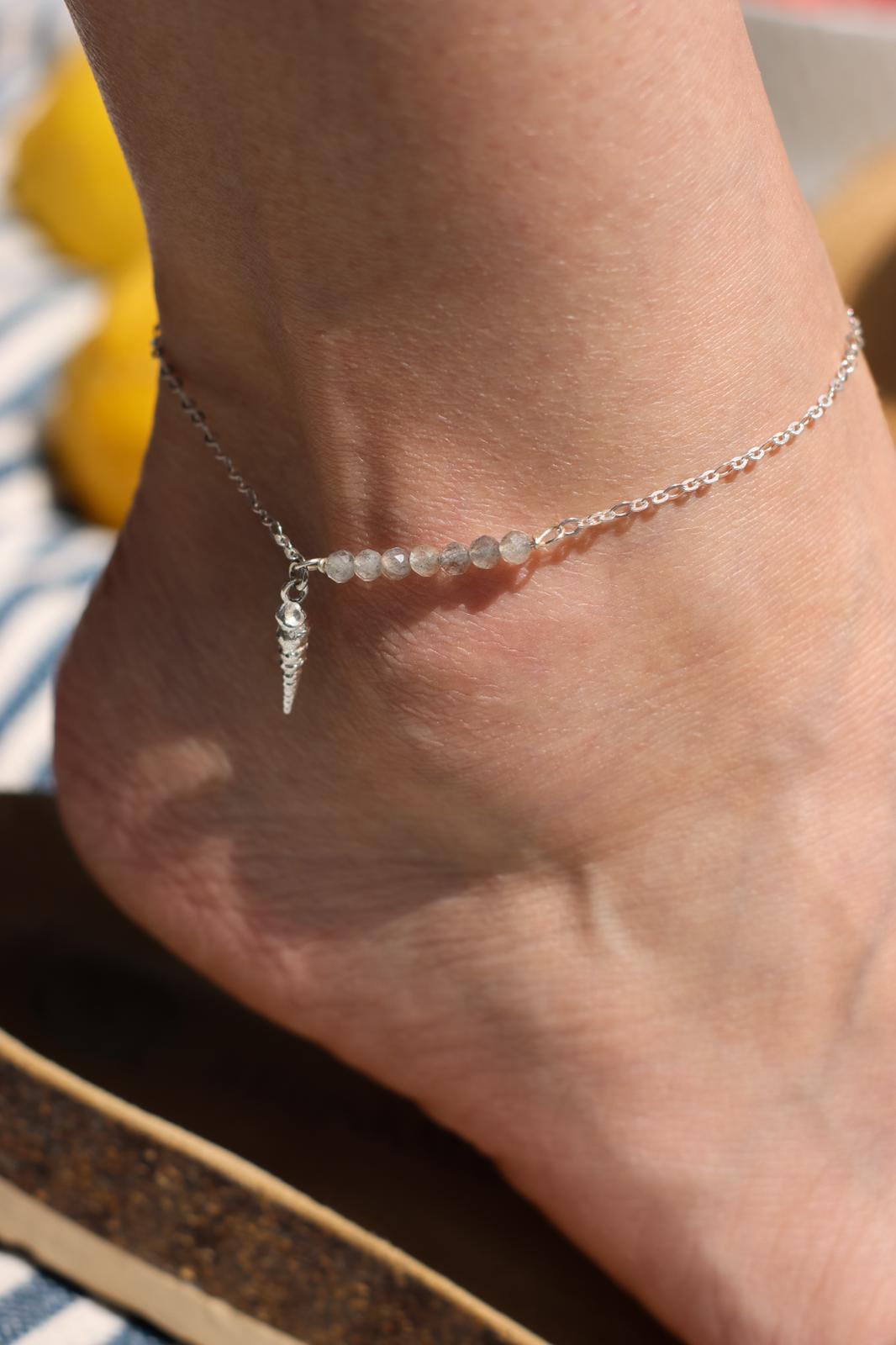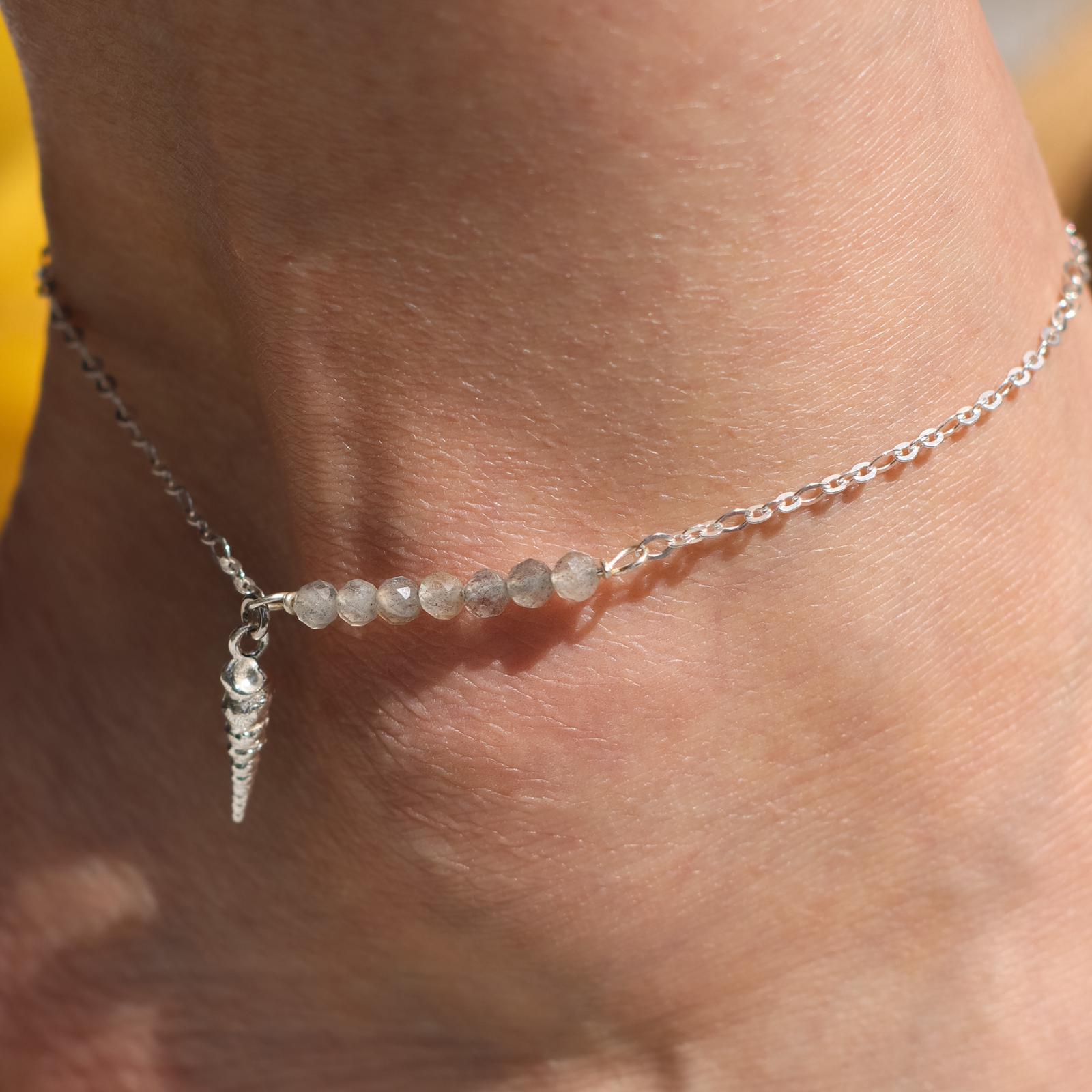Bransoletka na nogę labradoryt ze srebrną muszlą