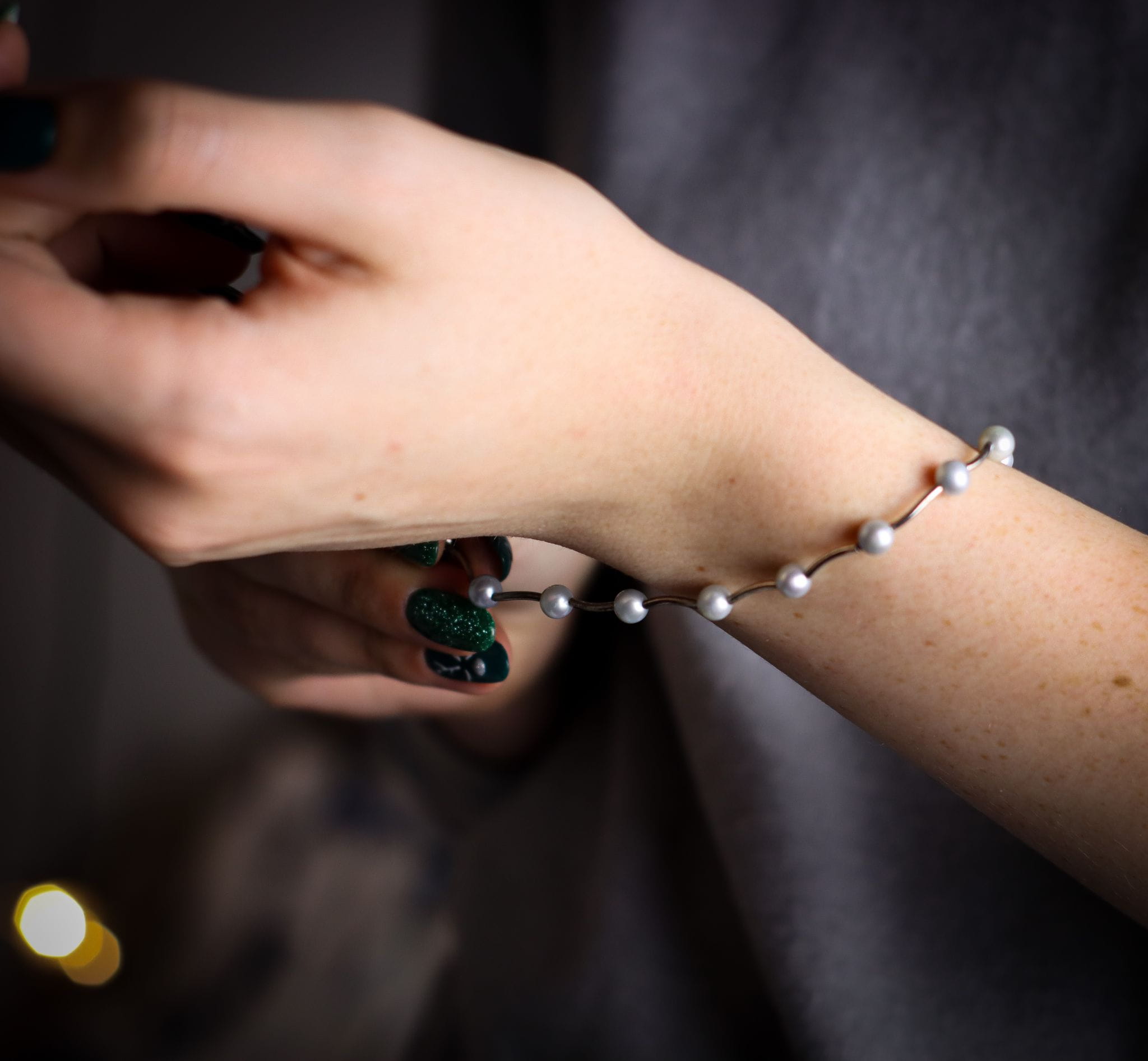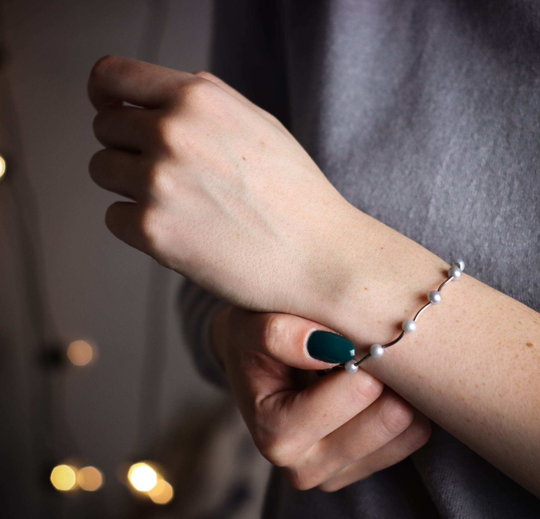 Bransoletka ręcznie wykonana ze srebrnych pereł hodowanych oraz srebra pr.925
