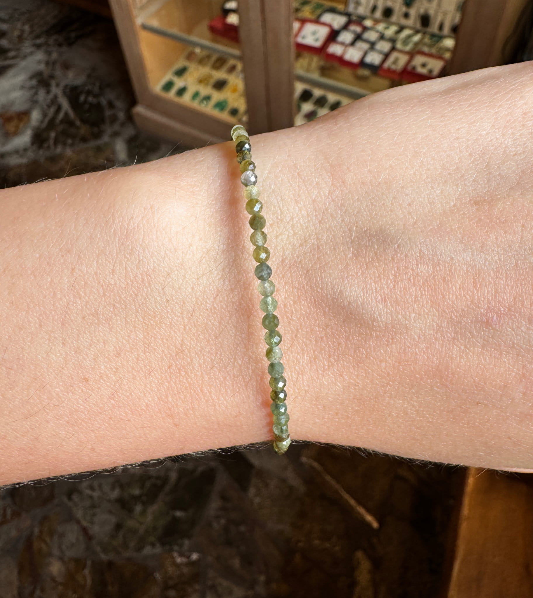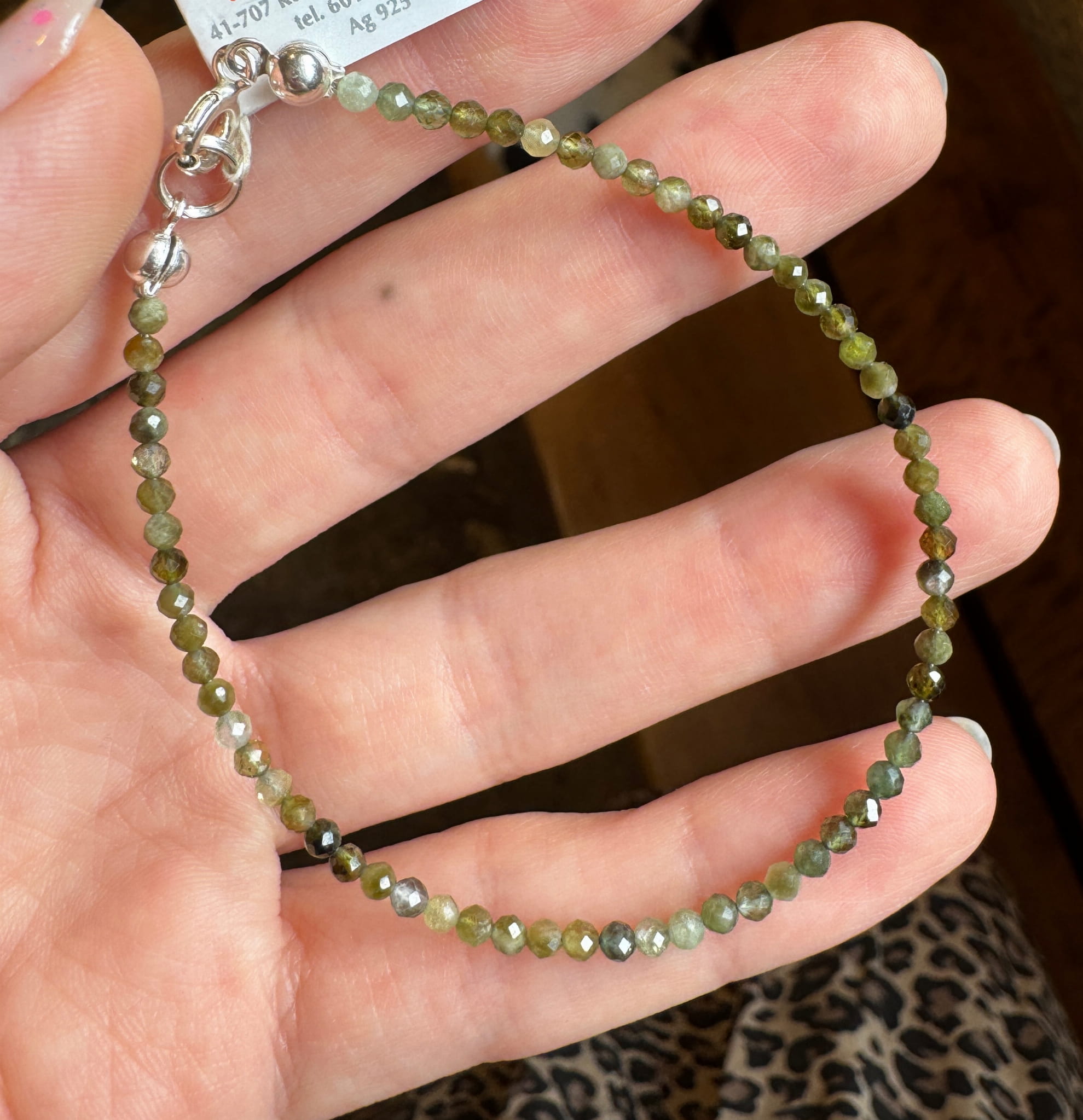 Klasyczna bransoletka z fasetowanych kuleczek zielonego turmalinu