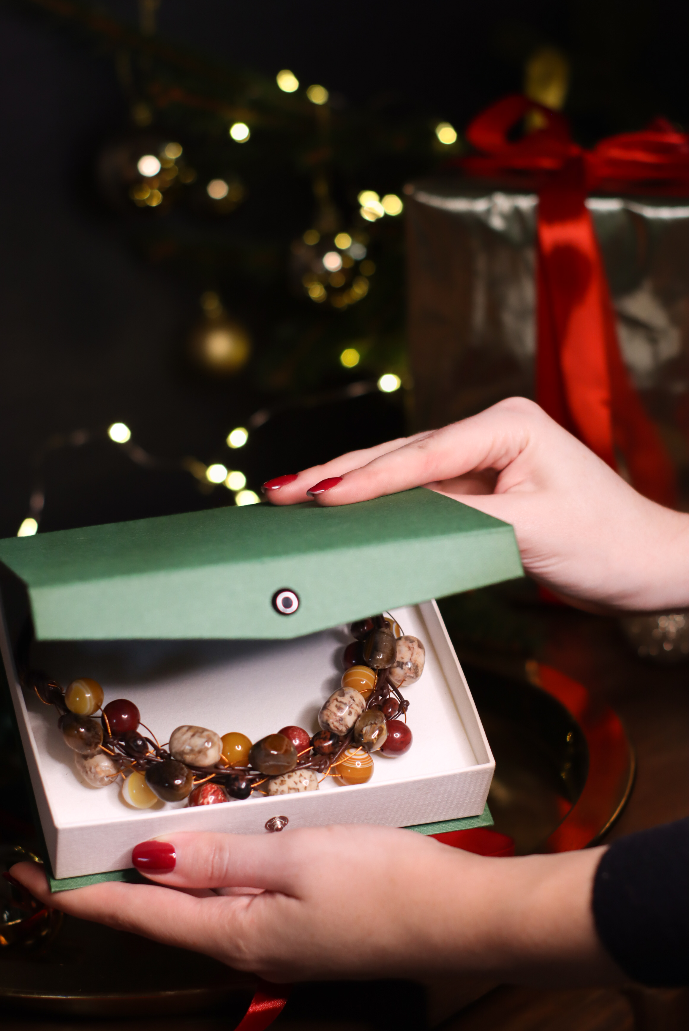 Naszyjnik, który zamówisz może różnić się kształtem i rodzajem kamieni, od tego, który widoczny jest na zdjęciu. Na życzenie przed wysyłką prześlemy Ci zdjęcie Twojego egzemplarza do akceptacji.