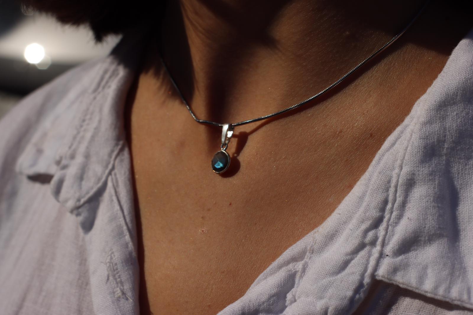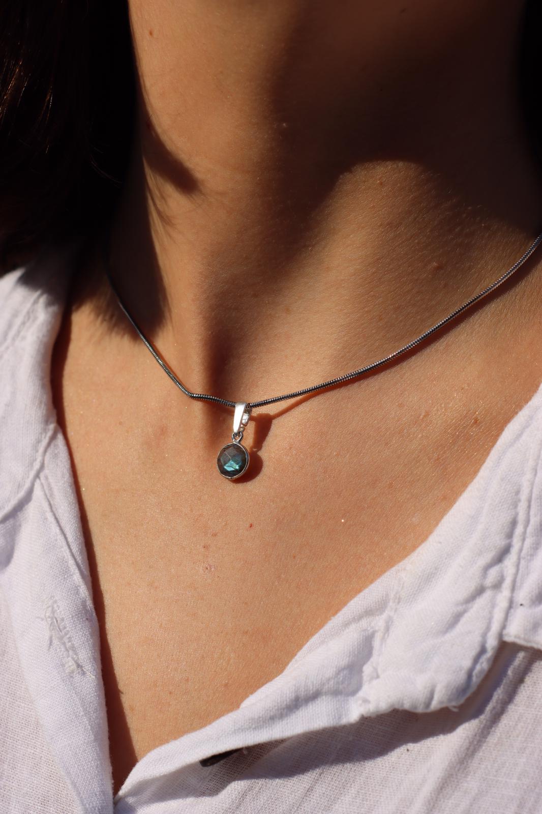 Piękny naszyjnik z mieniącego się labradorytu i srebra pr. 925.