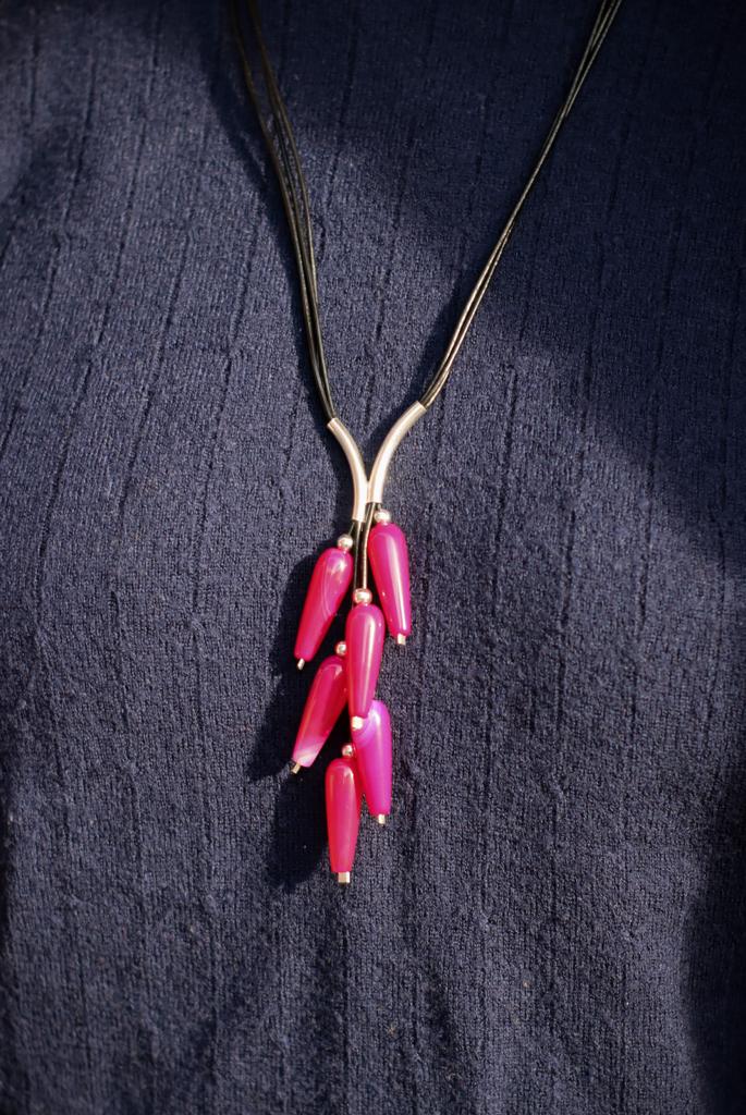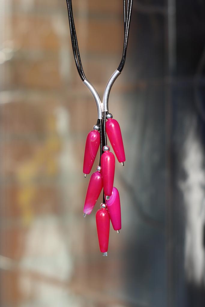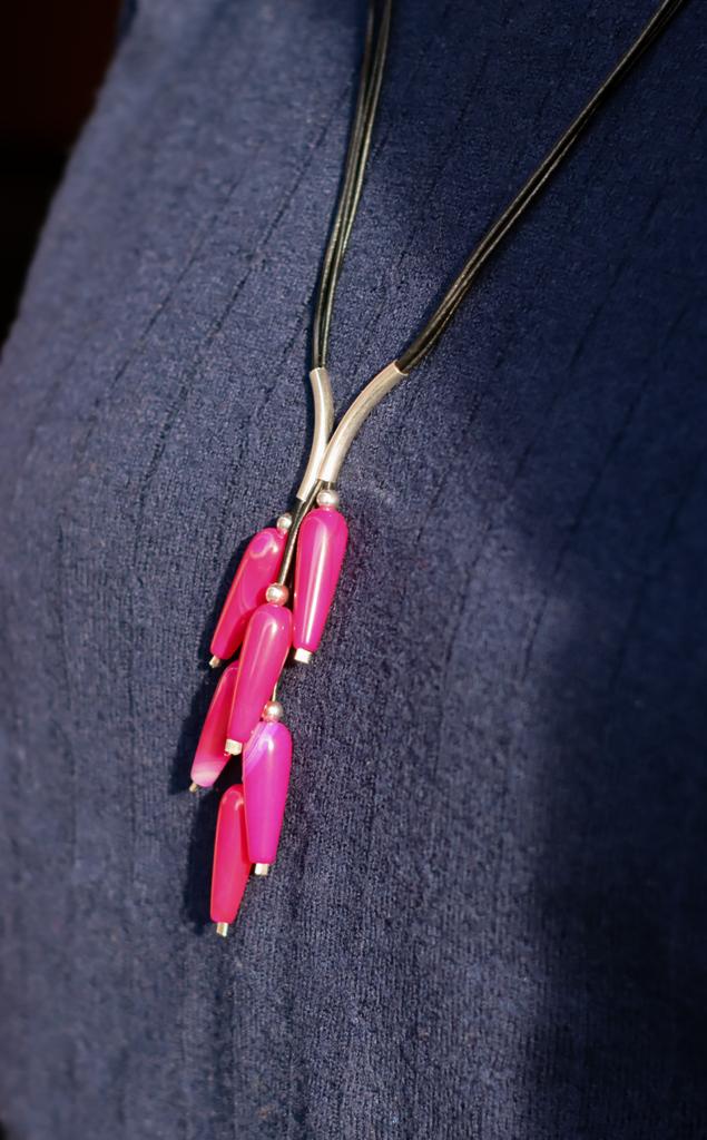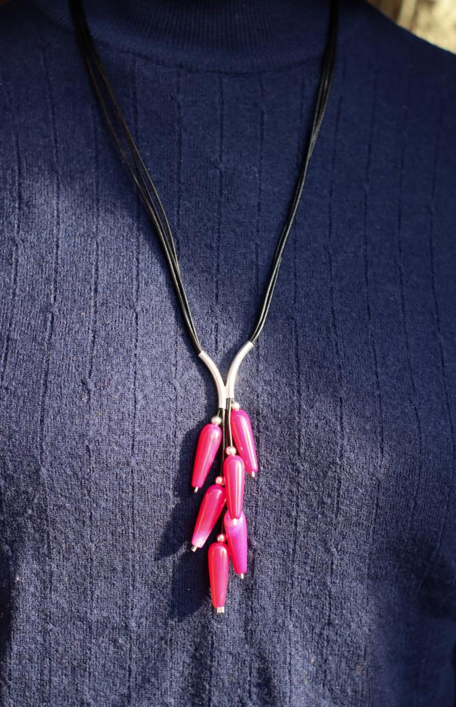 Naszyjnik Grono wykonany z podłużnego agatu purpurowego, srebra pr.925 oraz rzemienia w kolorze czarnym