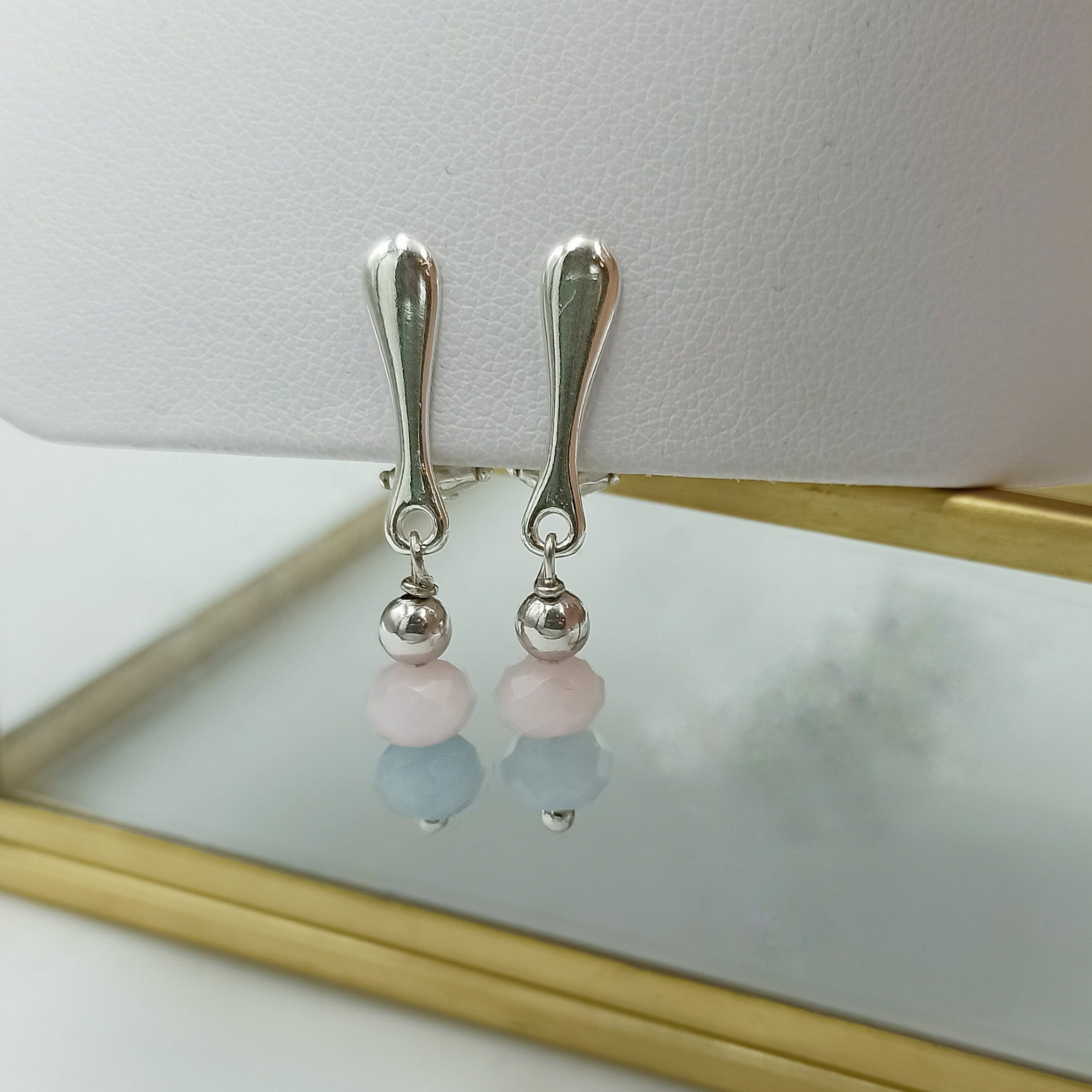 Ręcznie wykonane klipsy z fasetowanego morganitu i srebra pr. 925