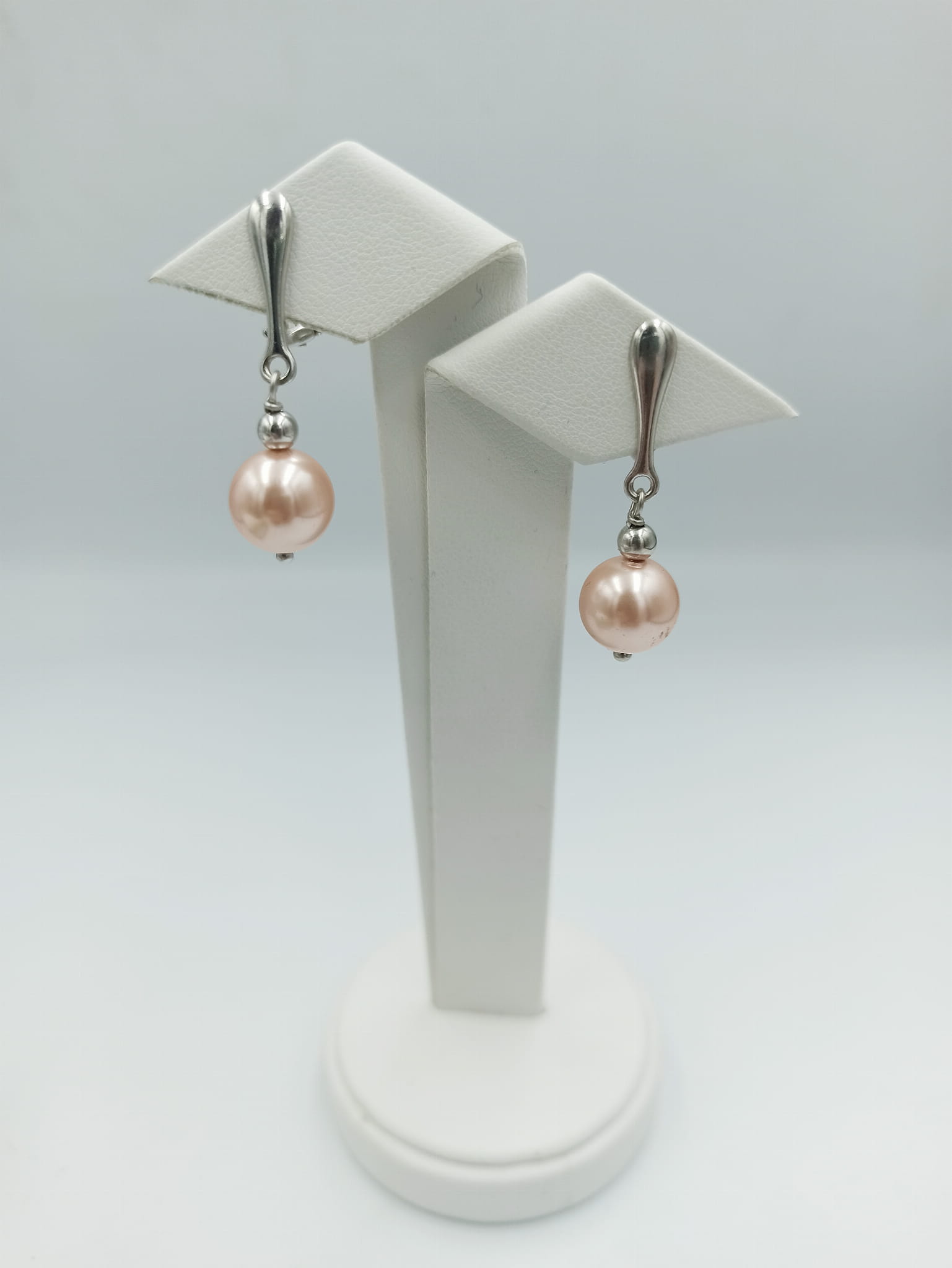 Ręcznie wykonane klipsy z różowej perły majorka i srebra pr. 925