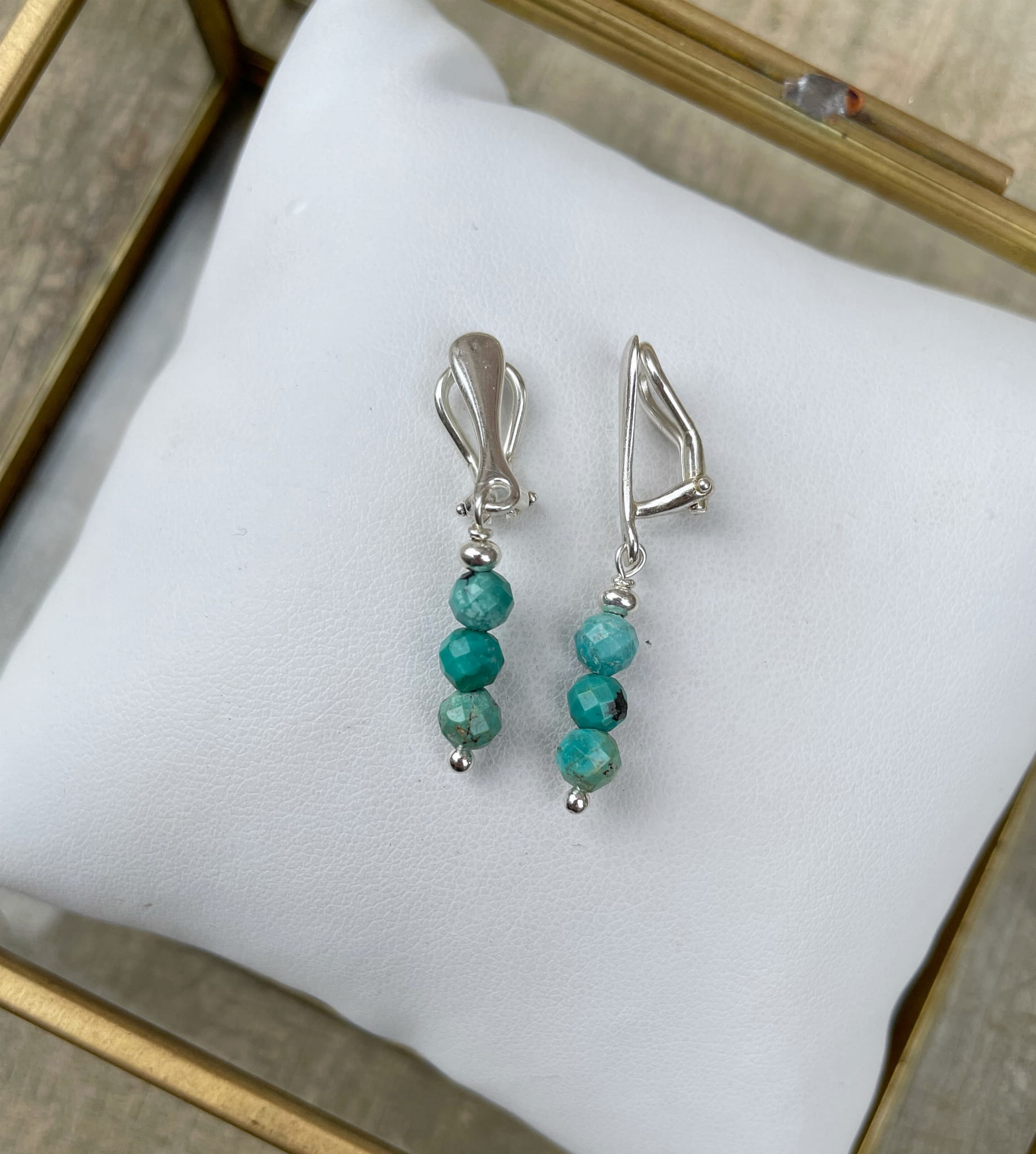 Ręcznie wykonane klipsy z fasetowanego turkusu i srebra pr. 925