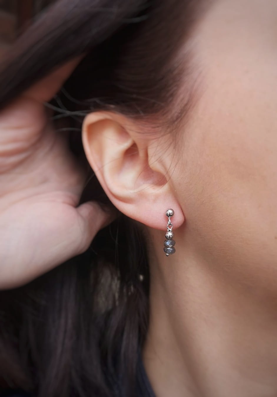 Ręcznie wykonane kolczyki z fasetowanego labradorytu i srebra pr. 925