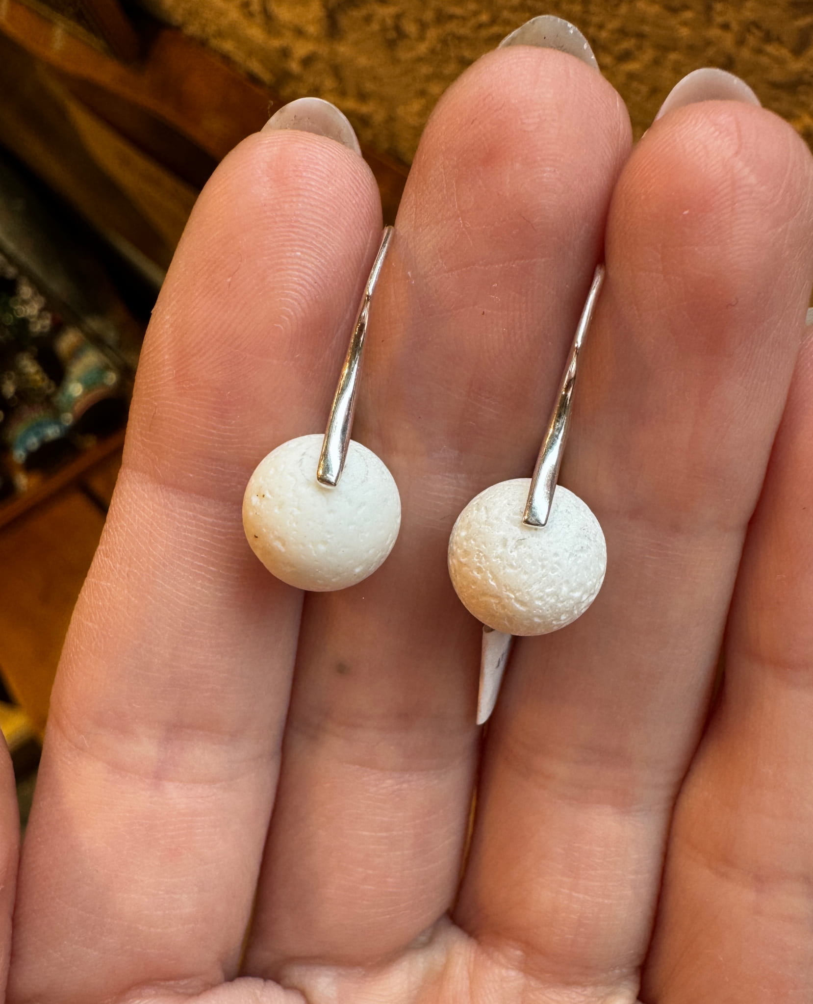 Ręcznie wykonane kolczyki Carmen z kulek białego korala i srebra pr. 925