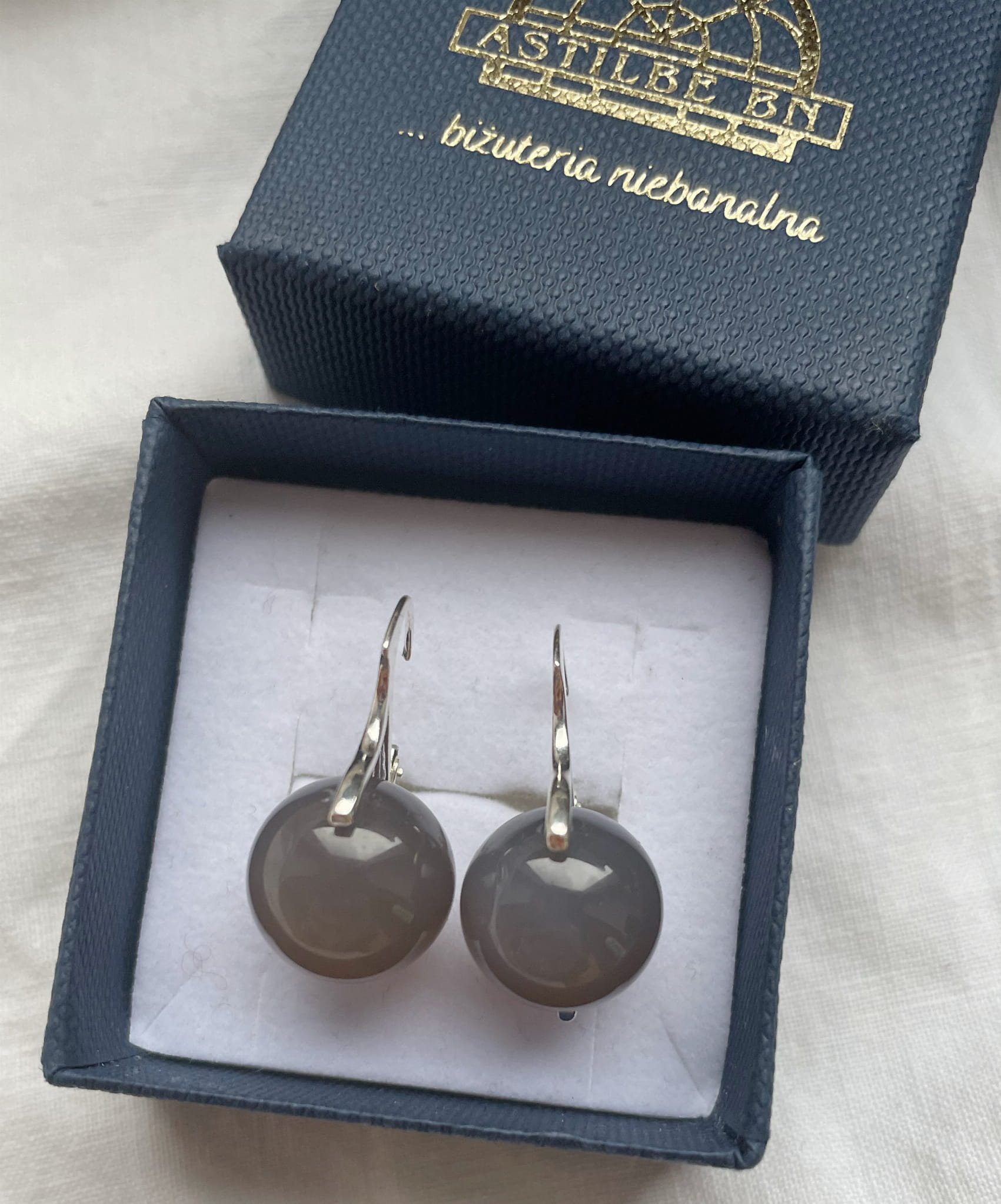 Kolczyki Carmen agat szary kulka