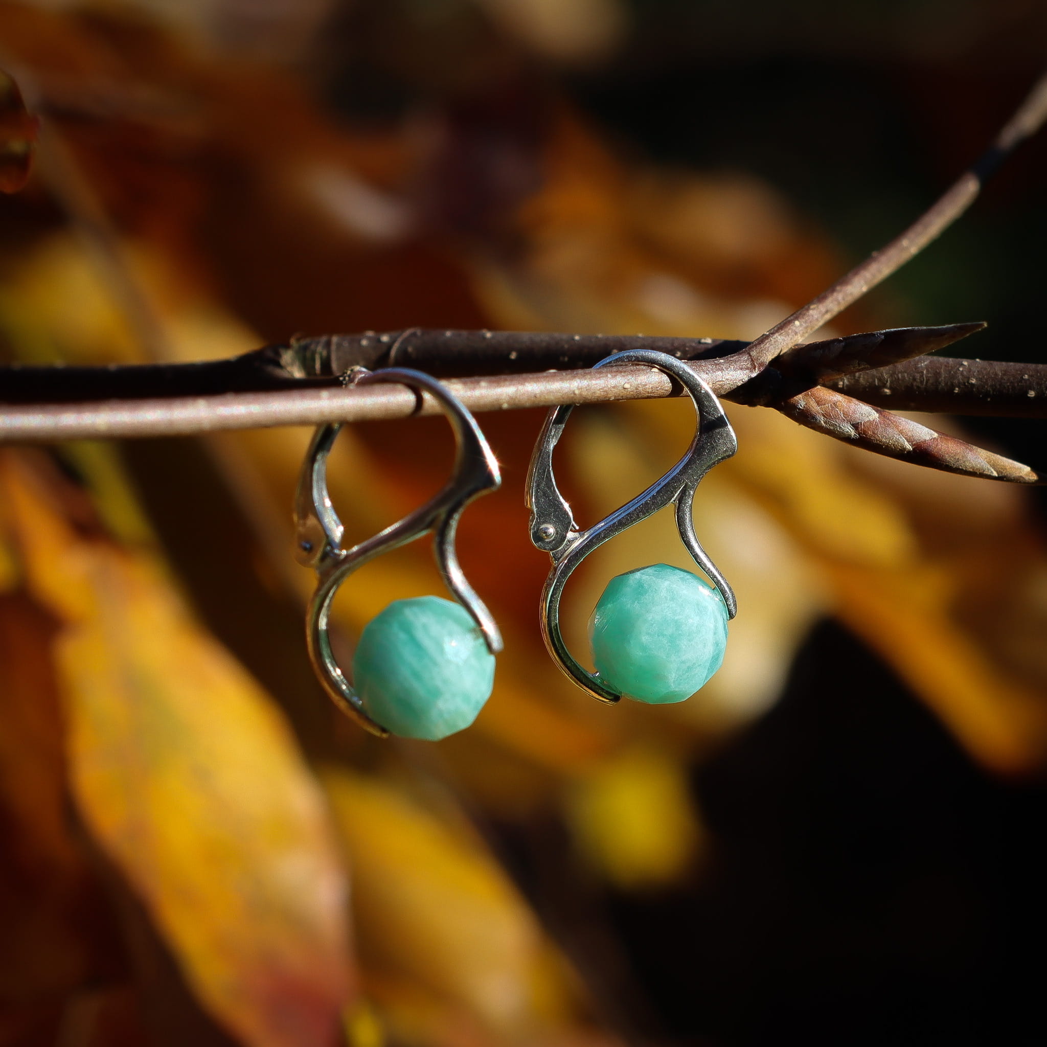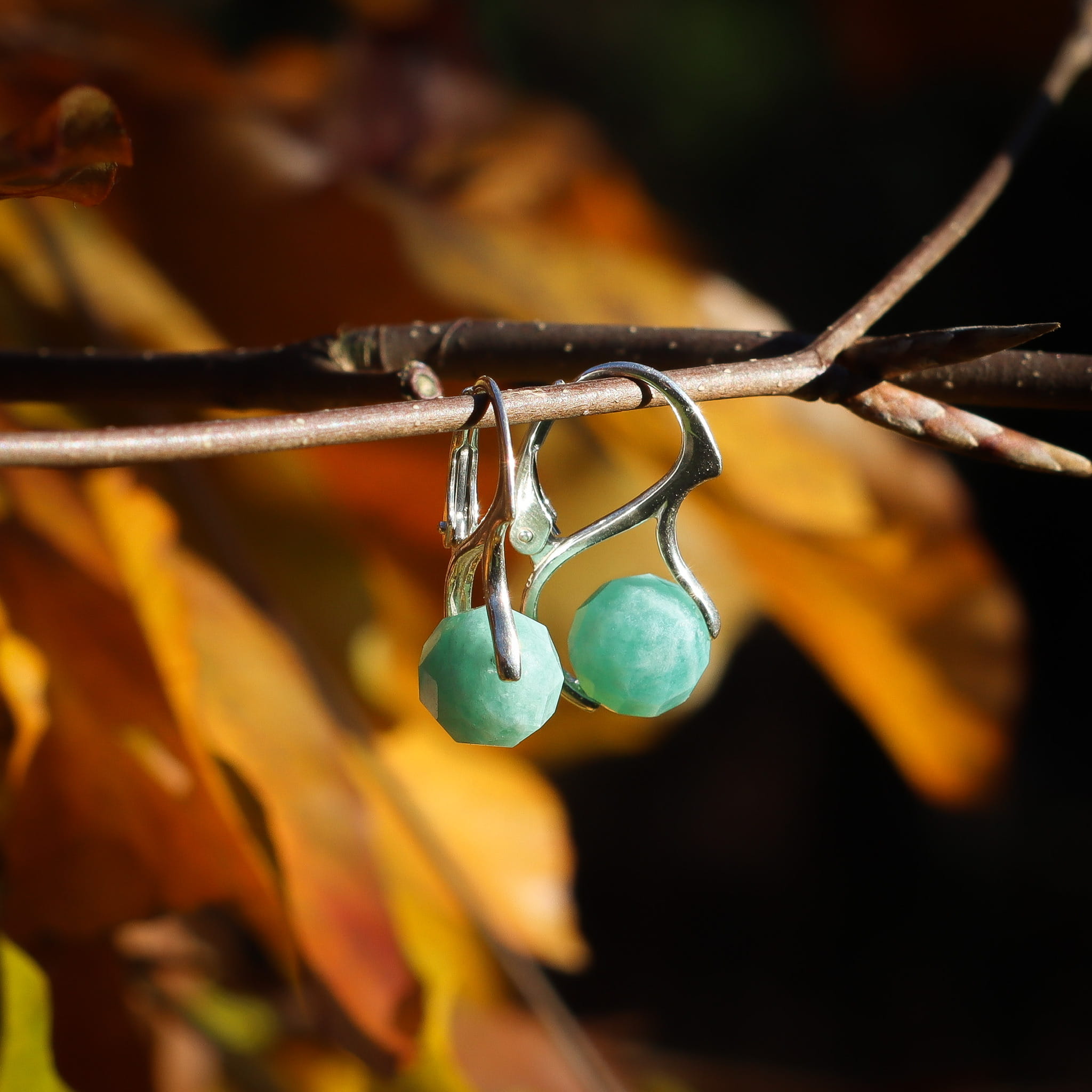 Ręcznie wykonane kolczyki Carmen z kulek fasetowanego amazonit i srebra pr. 925