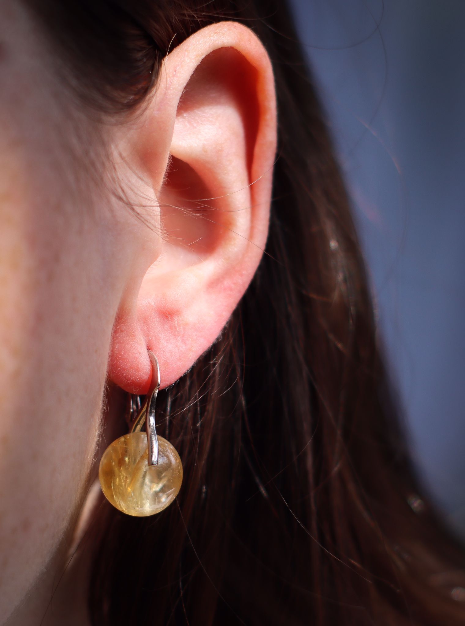 Ręcznie wykonane kolczyki Carmen z kulek cytrynu i srebra pr. 925