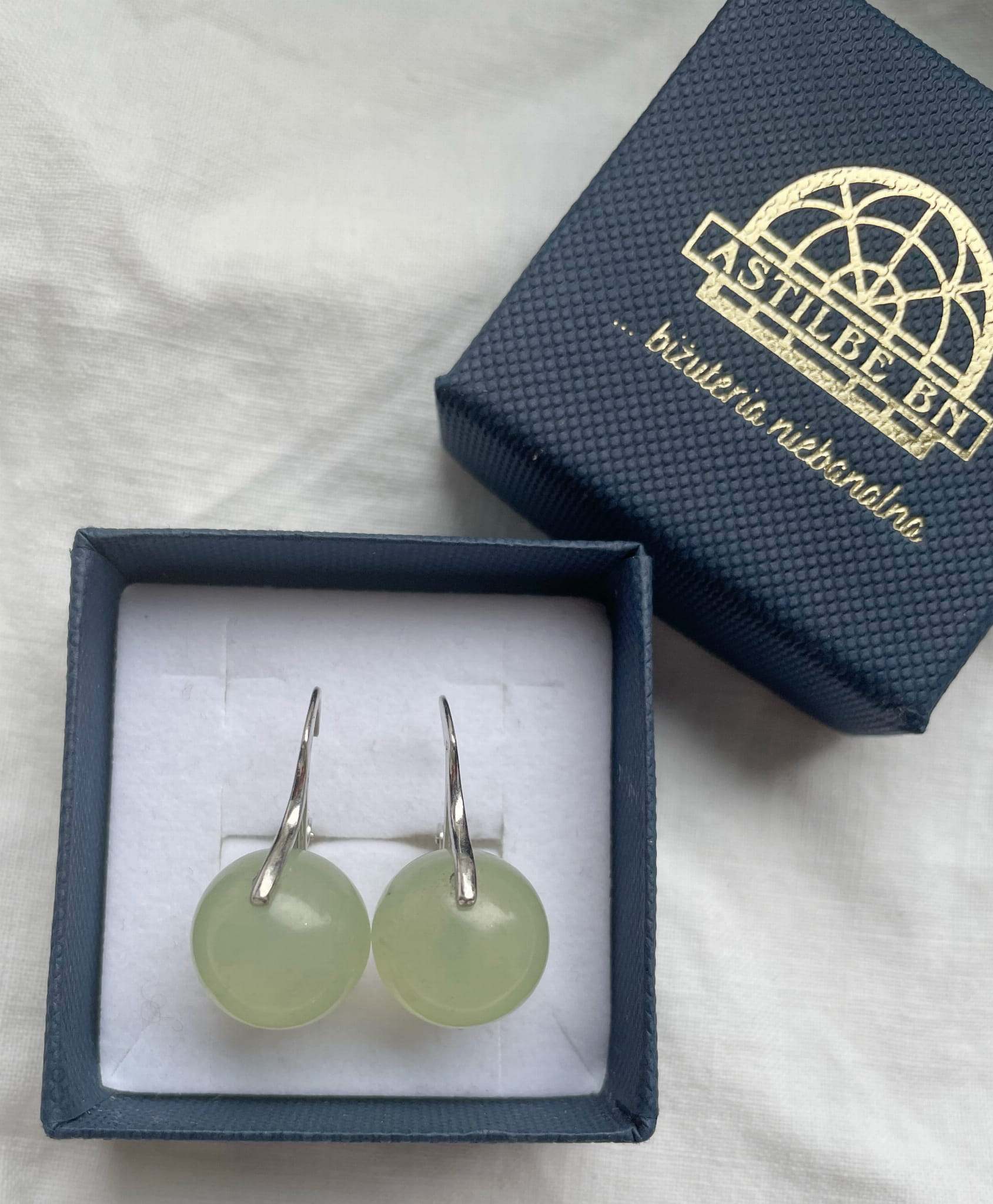 Ręcznie wykonane kolczyki Carmen z kulek zielonego jadeitu i srebra pr. 925