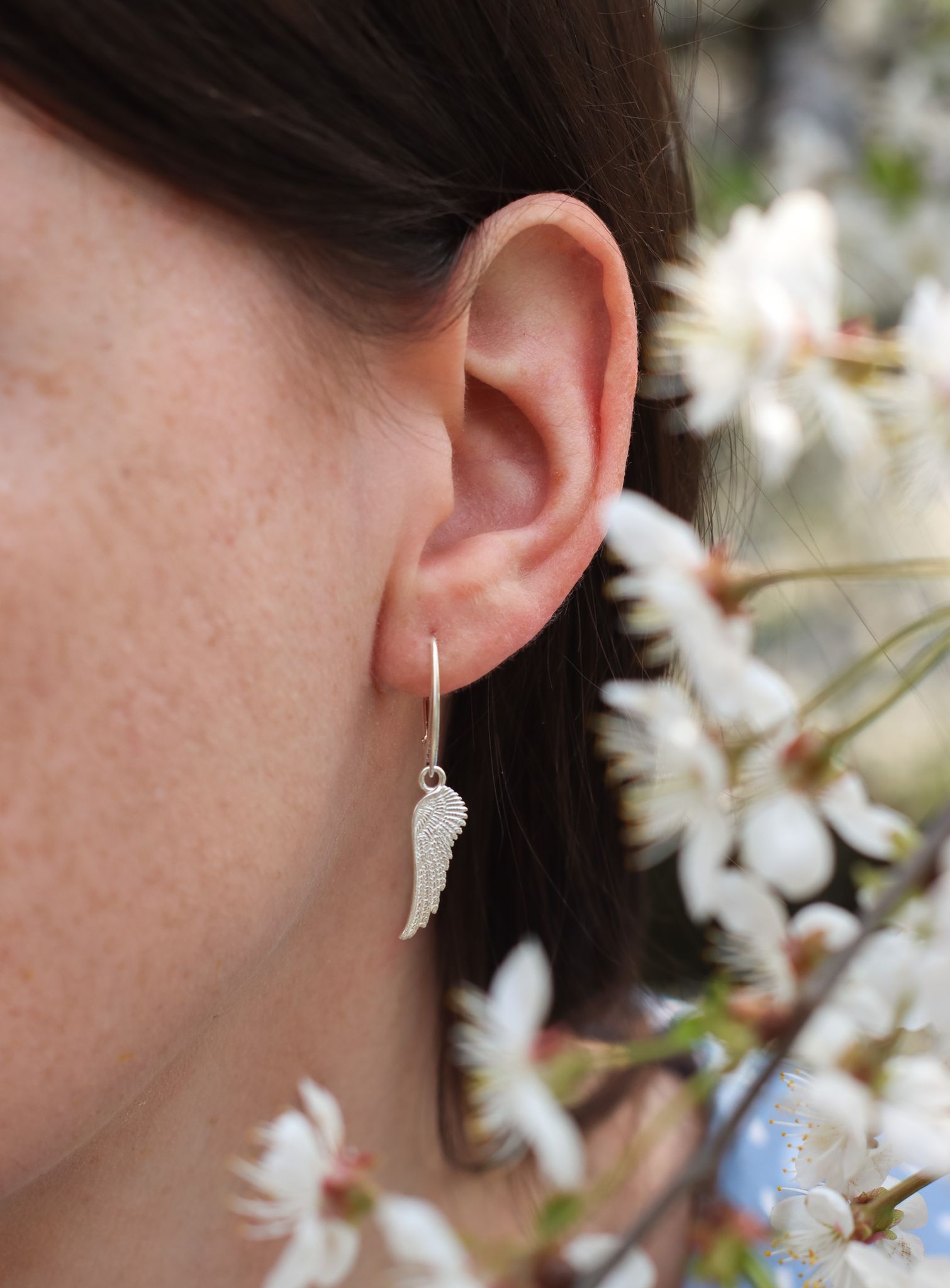 Ręcznie wykonane kolczyki z motywem skrzydła ze srebra pozłacanego pr. 925