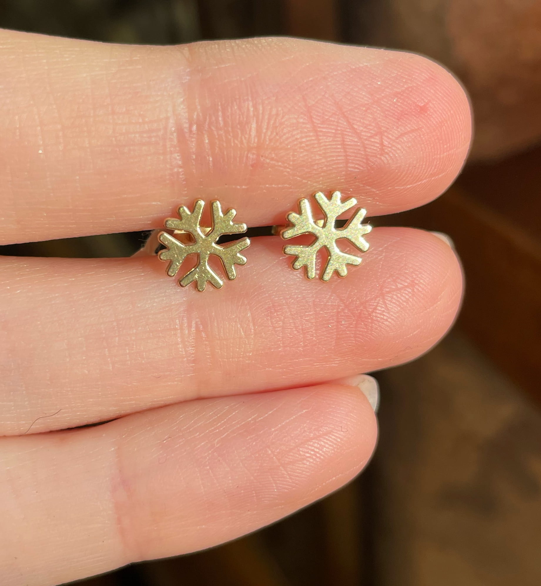 Kolczyki Śnieżynki srebro złocone