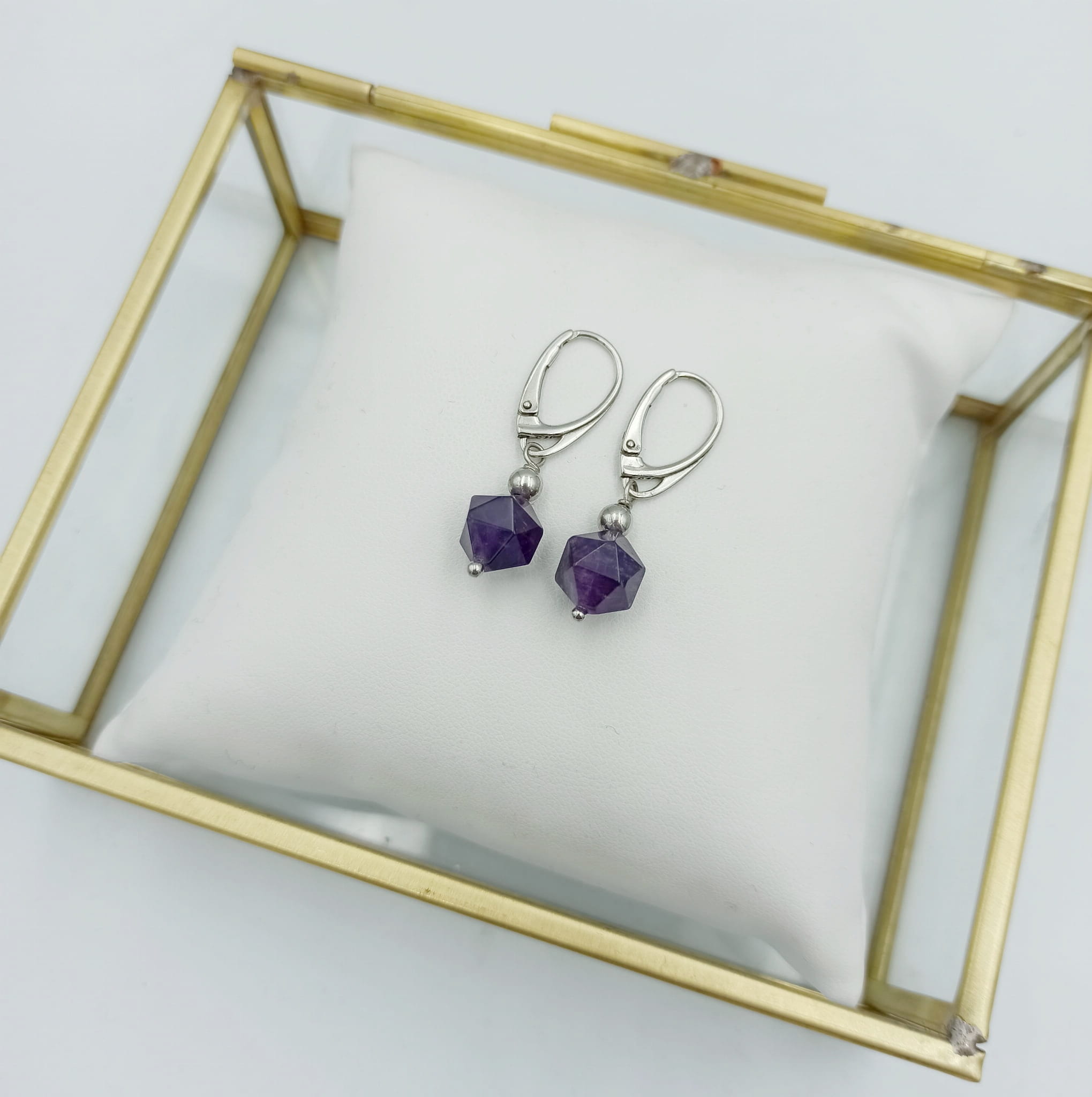 Ręcznie wykonane kolczyki z małych bryłek ametystów i srebra pr. 925