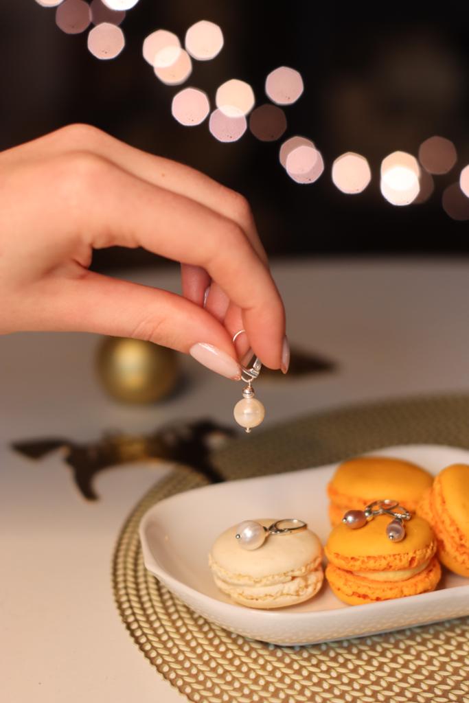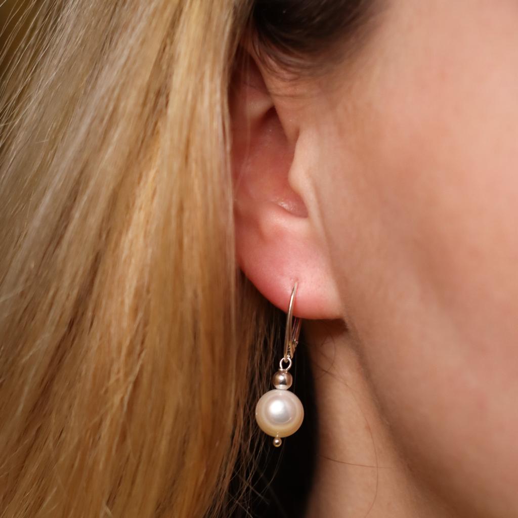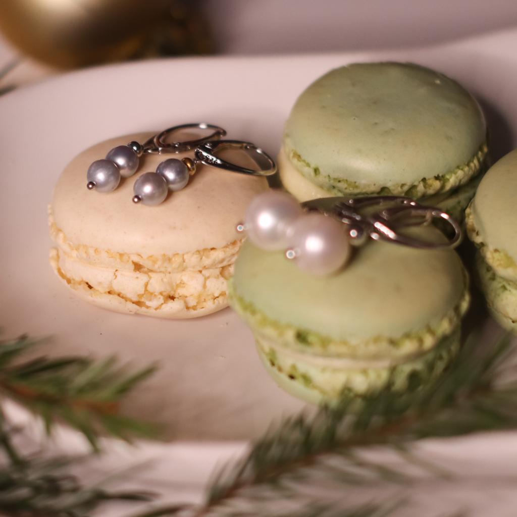 Ręcznie wykonane kolczyki z białych pereł hodowanych i srebra pr. 925