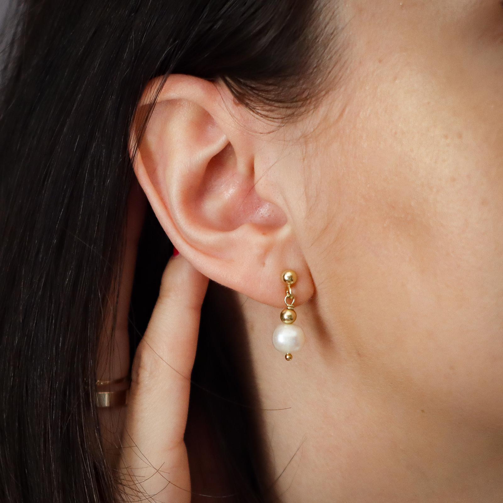 Ręcznie wykonane kolczyki z białych pereł hodowanych i pozłacanego srebra pr. 925