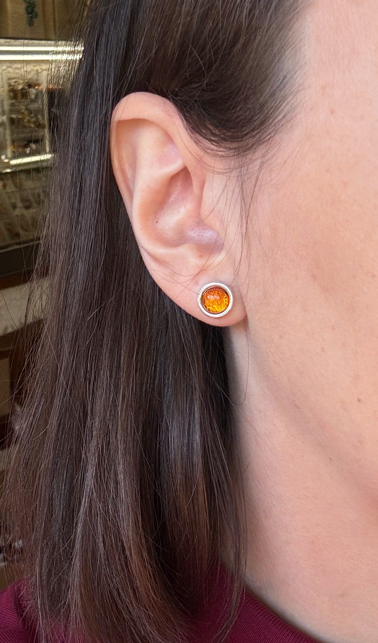 Ręcznie wykonane kolczyki z okrągłych bursztynów i srebra pr. 925
