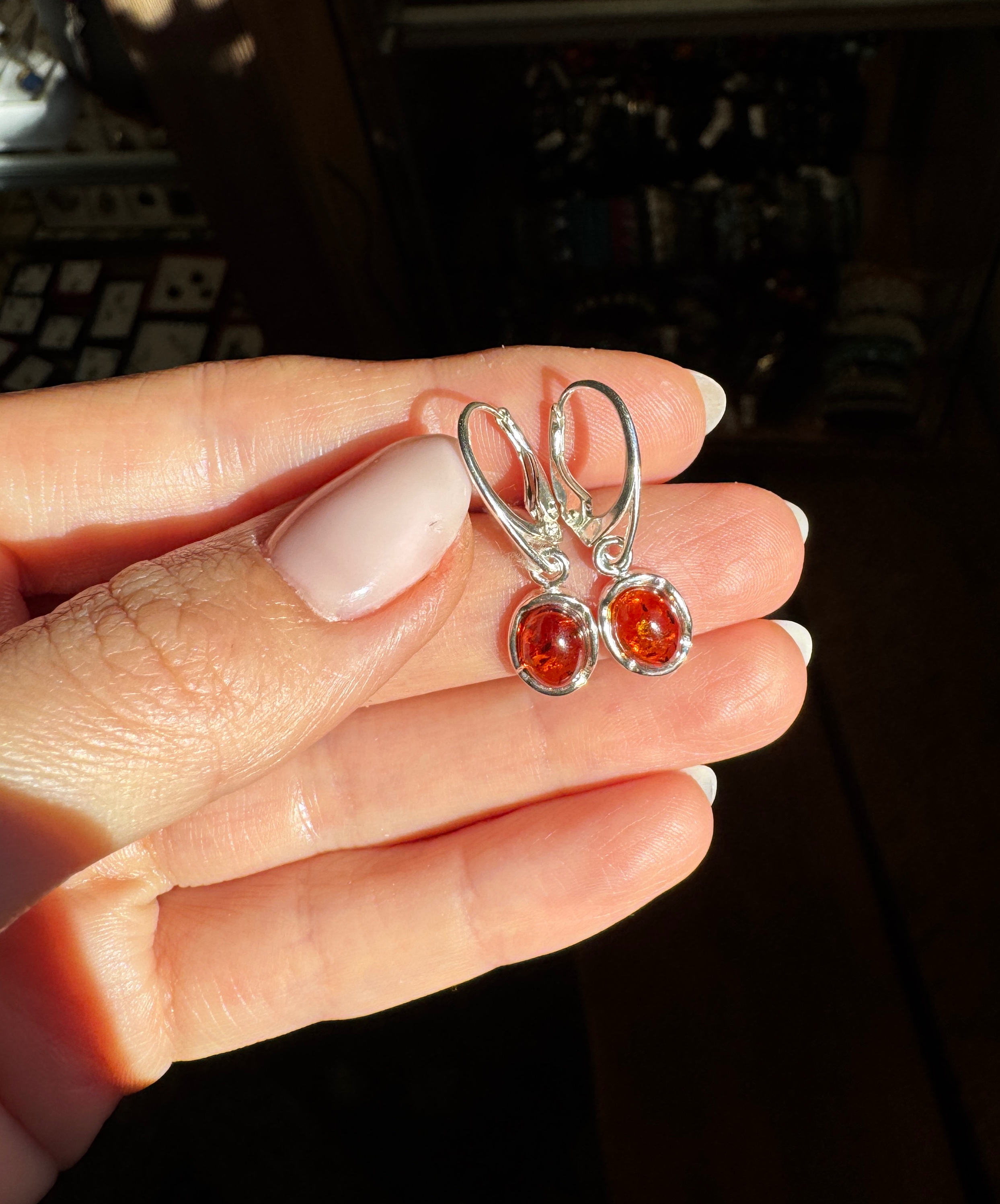 Ręcznie wykonane kolczyki z owalnych bursztynów i srebra pr. 925
