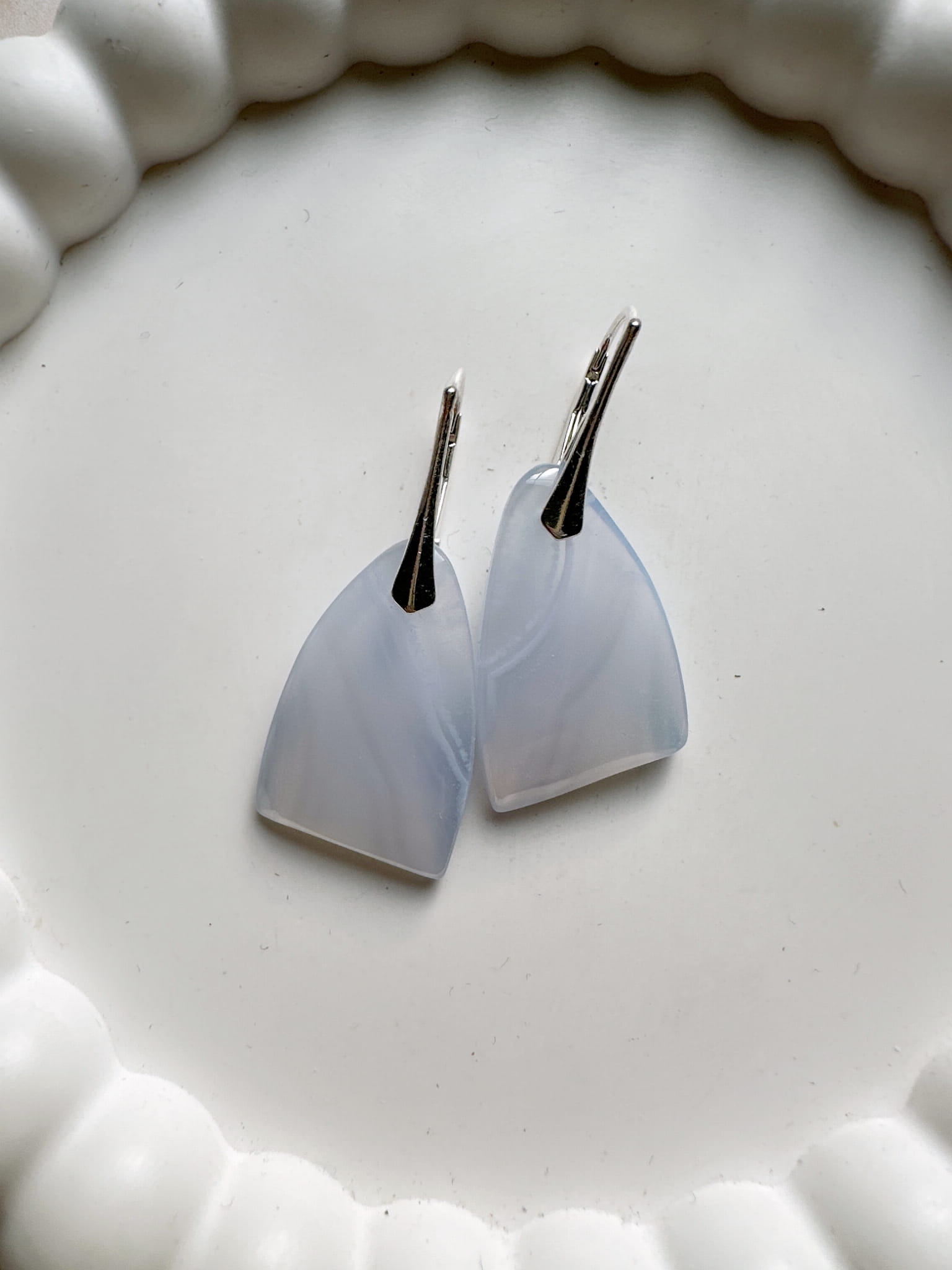Ręcznie wykonane kolczyki z płaskich błękitnych chalcedonów i srebra pr. 925