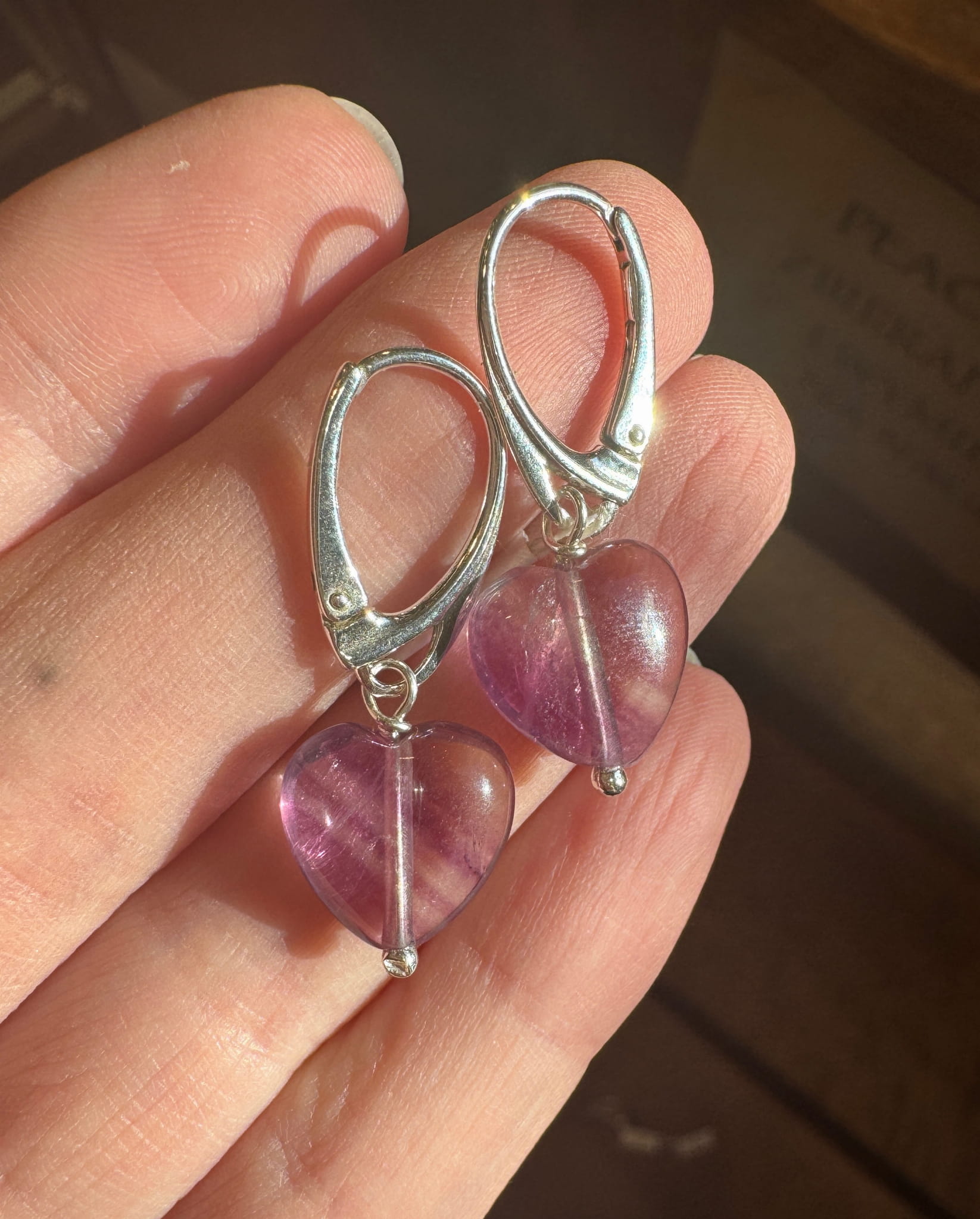 Kolczyki fluoryt fiolet Serce srebro złocone albo klasyczne