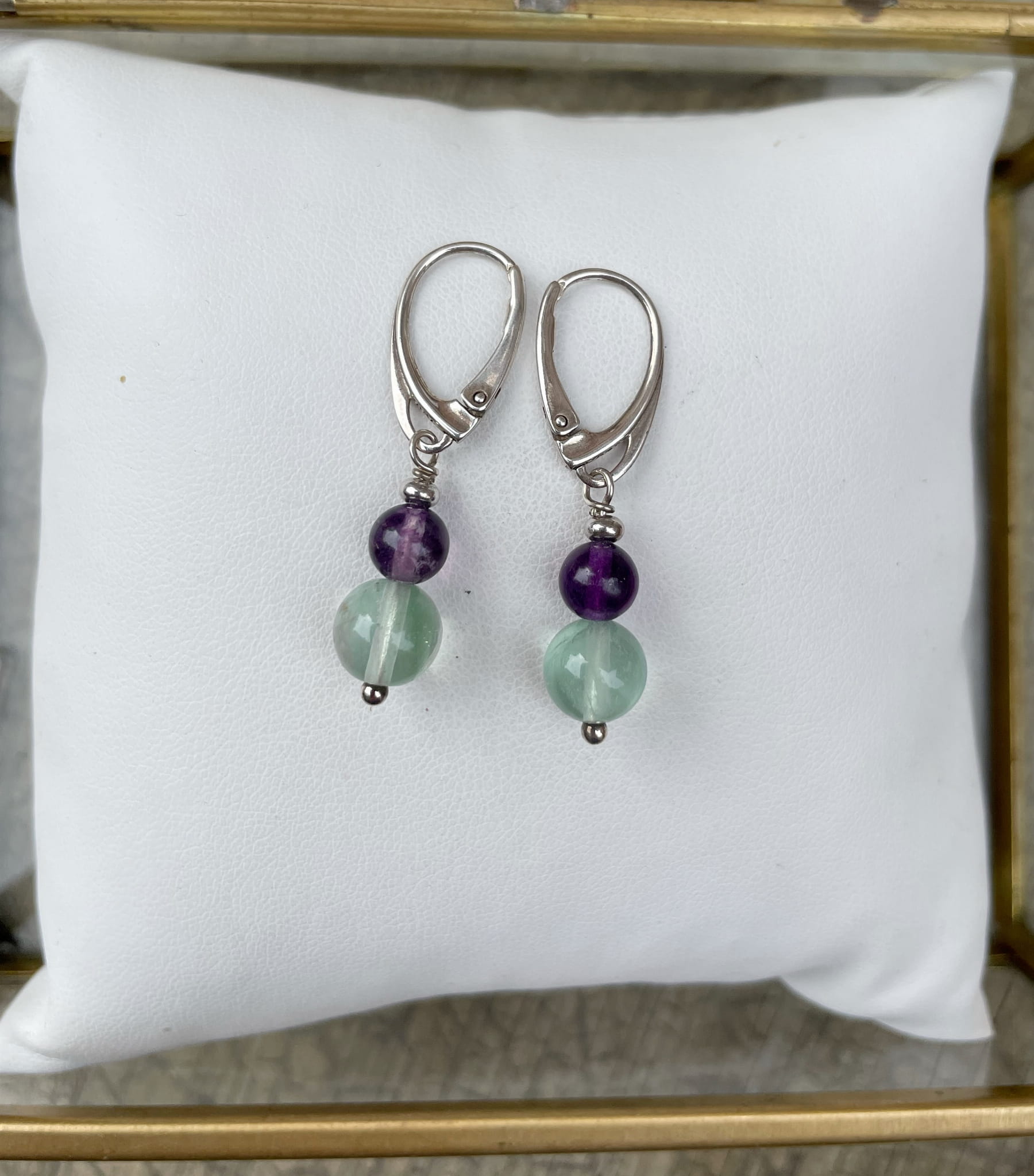 Ręcznie wykonane kolczyki z kulek fluorytu i srebra pr. 925