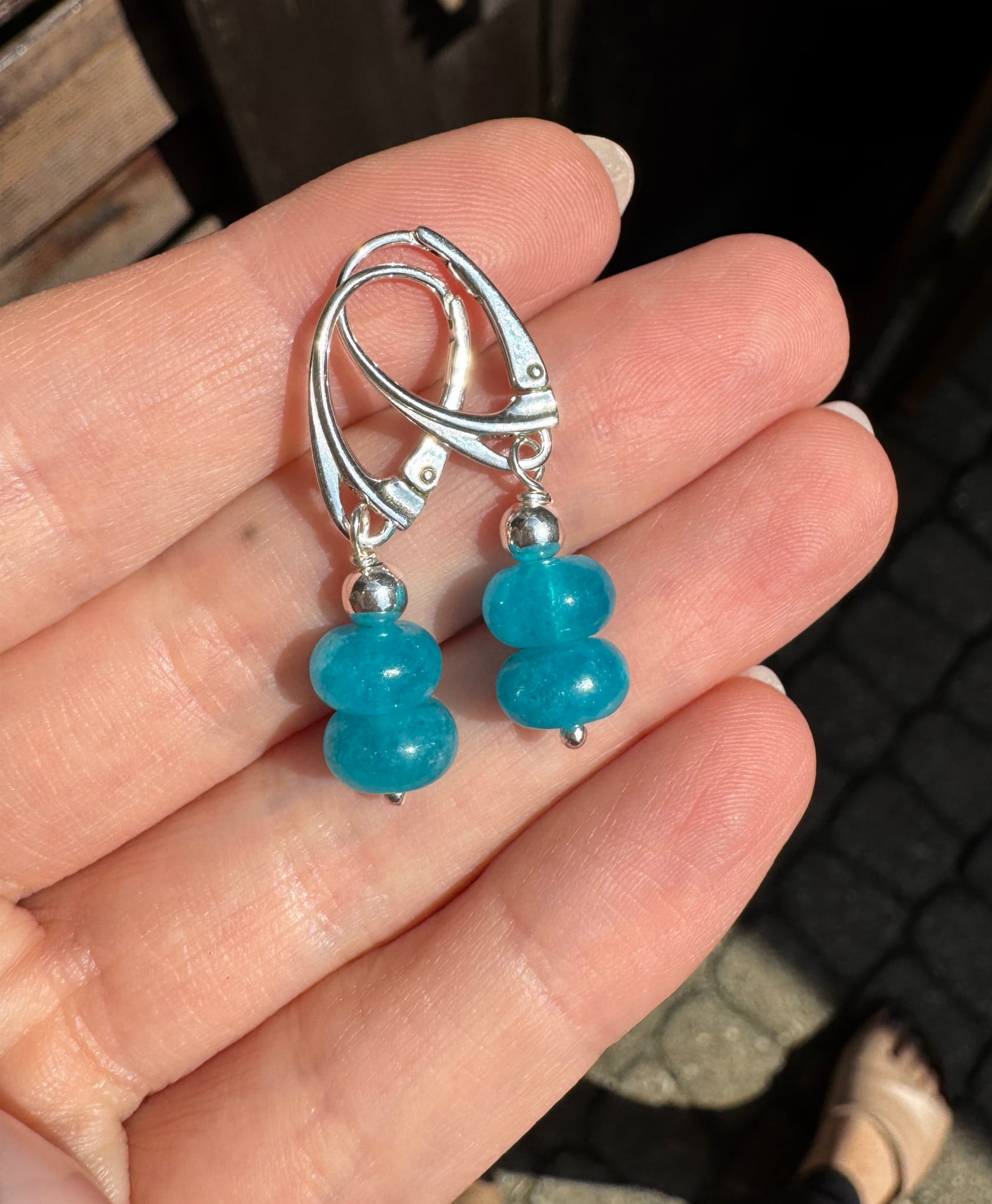 Kolczyki jadeit kolorowy morski