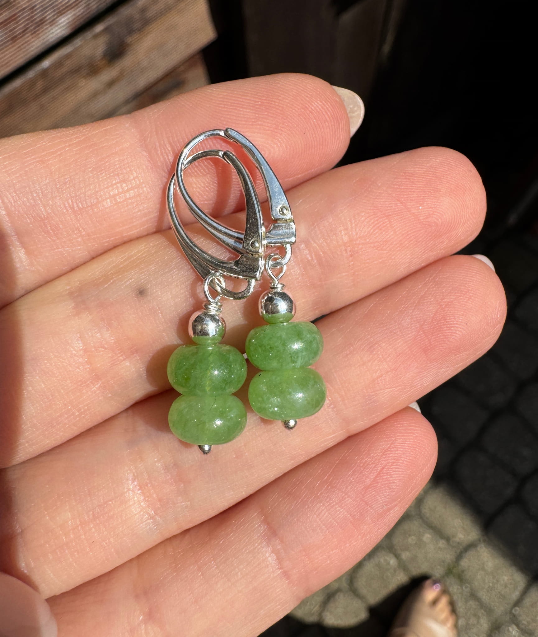 Ręcznie wykonane kolczyki z plasterków jadeitu i srebra pr. 925