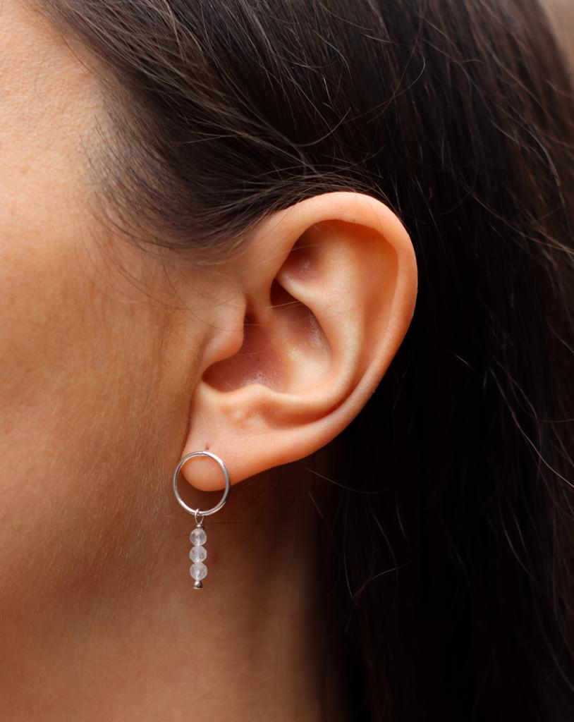 Ręcznie wykonane kolczyki z fasetowanego kamienia księżycowego i srebra pr. 925