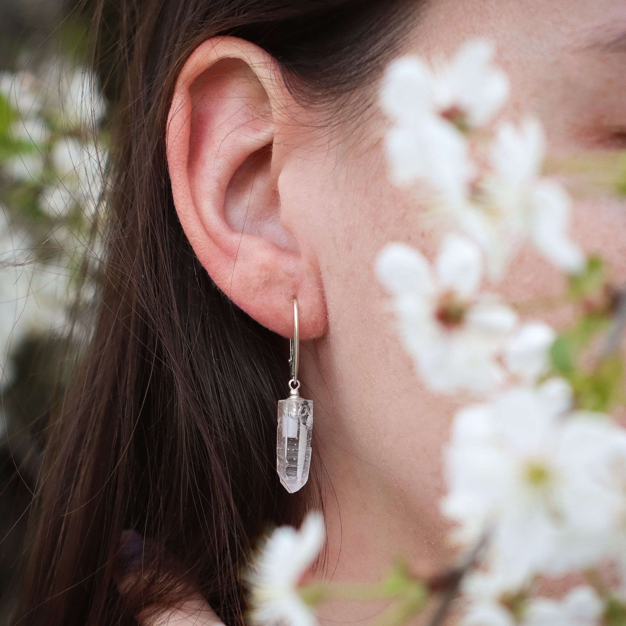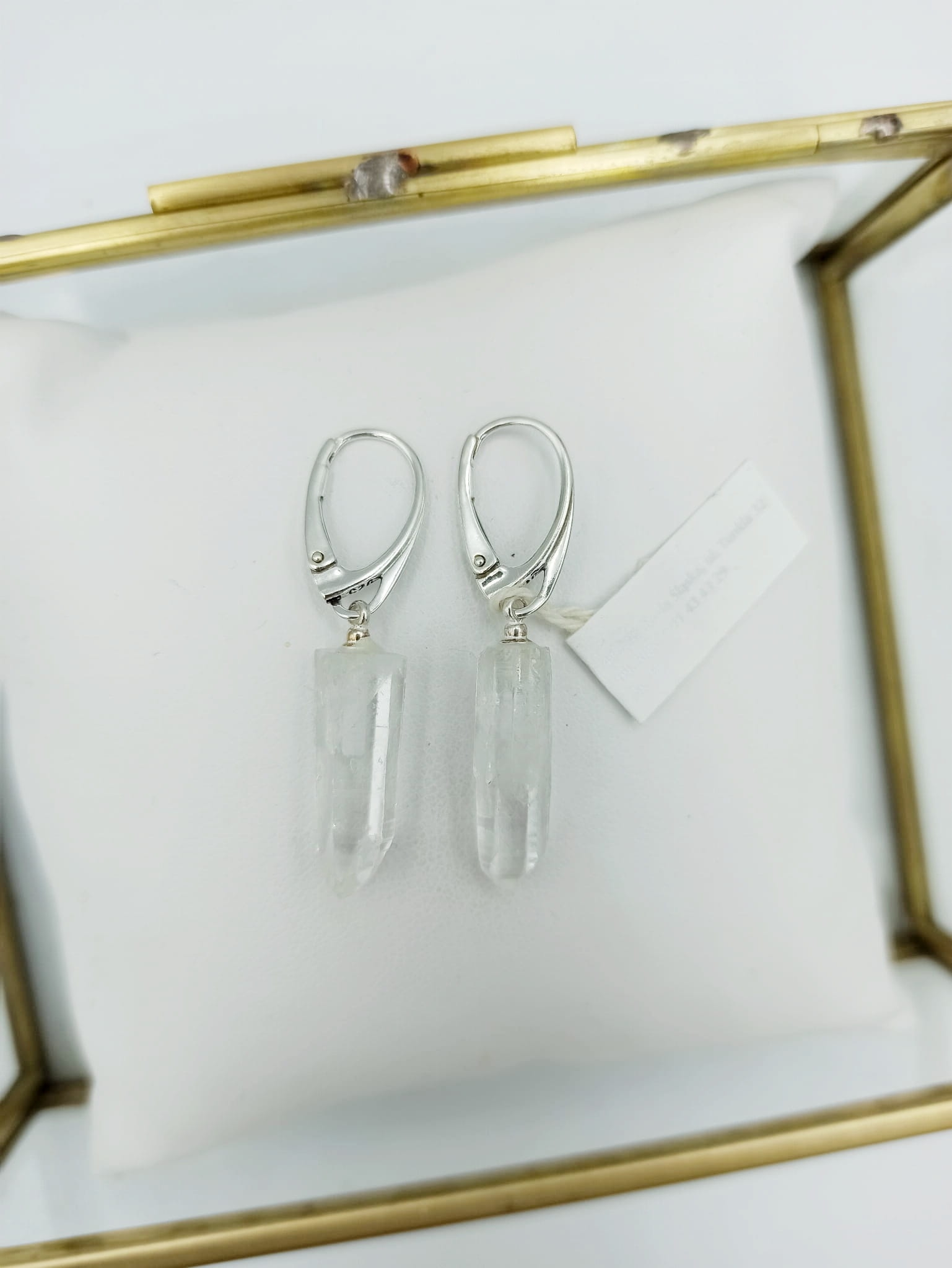 Ręcznie wykonane kolczyki z nieoszlifowanych sopli kryształa górskiego i srebra pr. 925