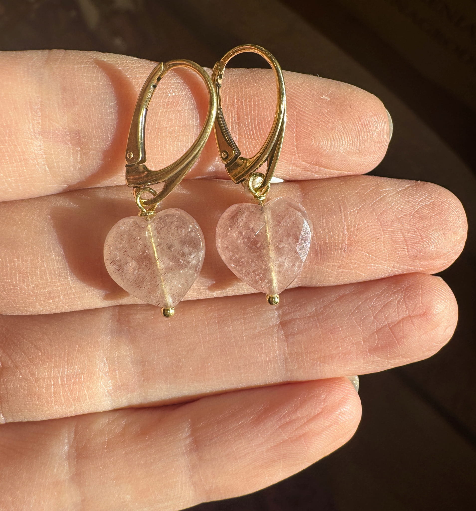 Kolczyki kwarc truskawkowy Serce fasetowane srebro złocone albo klasyczne